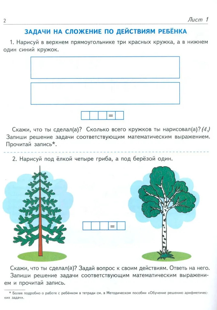 Задачи в тетради «Я решаю арифметические задачи» расположены в определенной последовательности с соблюдением правила дидактики «от простого к сложному». Дети научатся решать задачи разного типа: на отношение «больше на...» или «меньше на...», а также по числовому примеру, математическому выражению. Они познакомятся с методом моделирования, который позволит лучше понять структуру задачи, связь и отношения между числовыми данными. Модель помогает ребенку абстрагироваться от признаков предметов и сосредоточиться только на количественной характеристике ситуации. Реше-ние арифметических задач поможет ребенку раскрыть смысл основных арифметических понятий (условие, вопрос, решение, ответ), понять зависимости между величинами, смысл арифметических действий. И как итог — решать задачи в уме. Тетрадь входит в дополнительный комплект ОМС технологии «Математические ступень-ки» и предназначена для совместной работы взрослого с ребенком 5-7 лет. |
