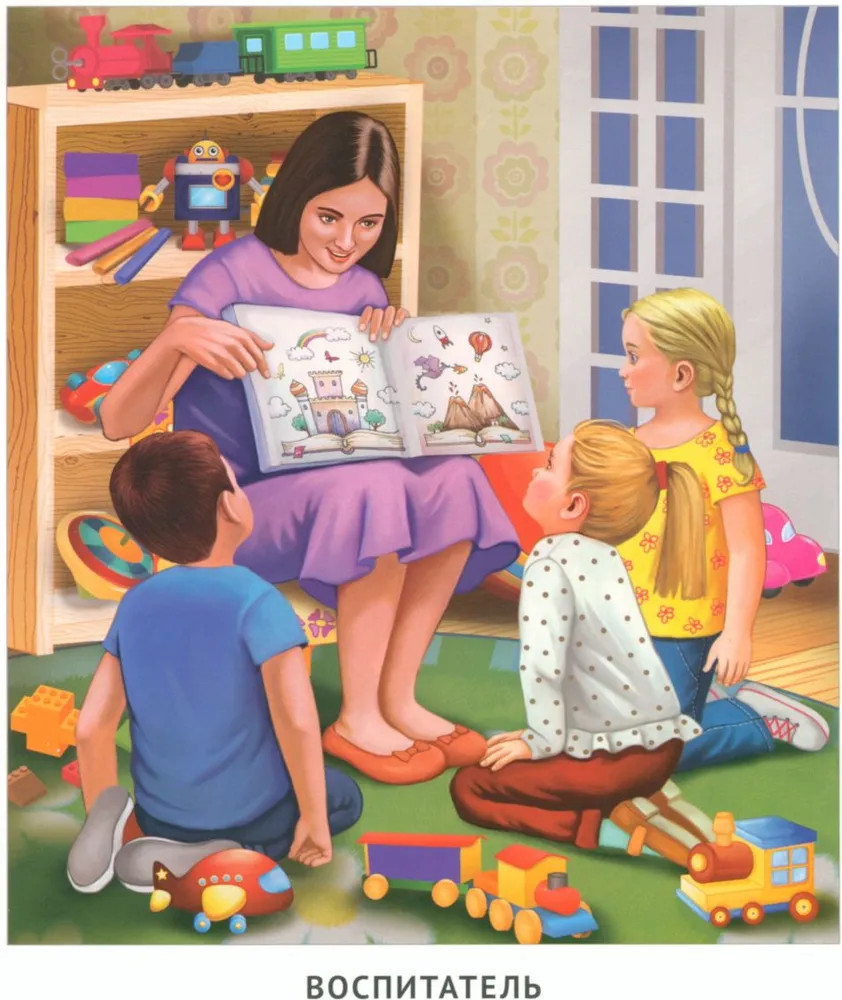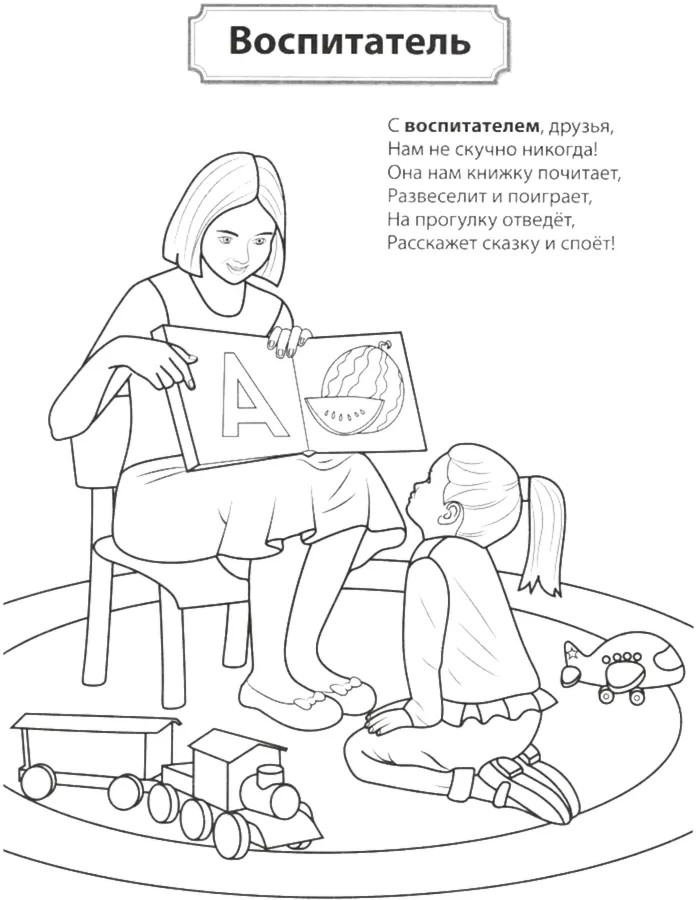 Кто работает в школе и детском саду. Комплект из демонстрационных картинок и раскраскиновинка