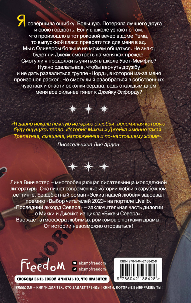 Серия: Young Adult. Парни, что украдут твое сердце. Любовные романы Лины Винчестер Я совершила ошибку. Большую. Потеряла лучшего друга и свою гордость. Если в школе узнают о том, что произошло в тот роковой вечер в доме Рэма, то выпускной класс превратится для меня в ад. Мы с Оливером больше не можем общаться. Не знаю, будет ли Джейк смотреть на меня как прежде. Смогу ли я продолжить учиться в школе Уэст-Мемфис? Нужно сделать всё, чтобы вернуть дружбу и не дать развалиться группе «Норд», в которой из-за меня произошел раскол. Но смогу ли я разобраться в собственных чувствах и спасти осколки сердца, ведь с каждым днем меня всё сильнее тянет к Джейку Элфорду? |