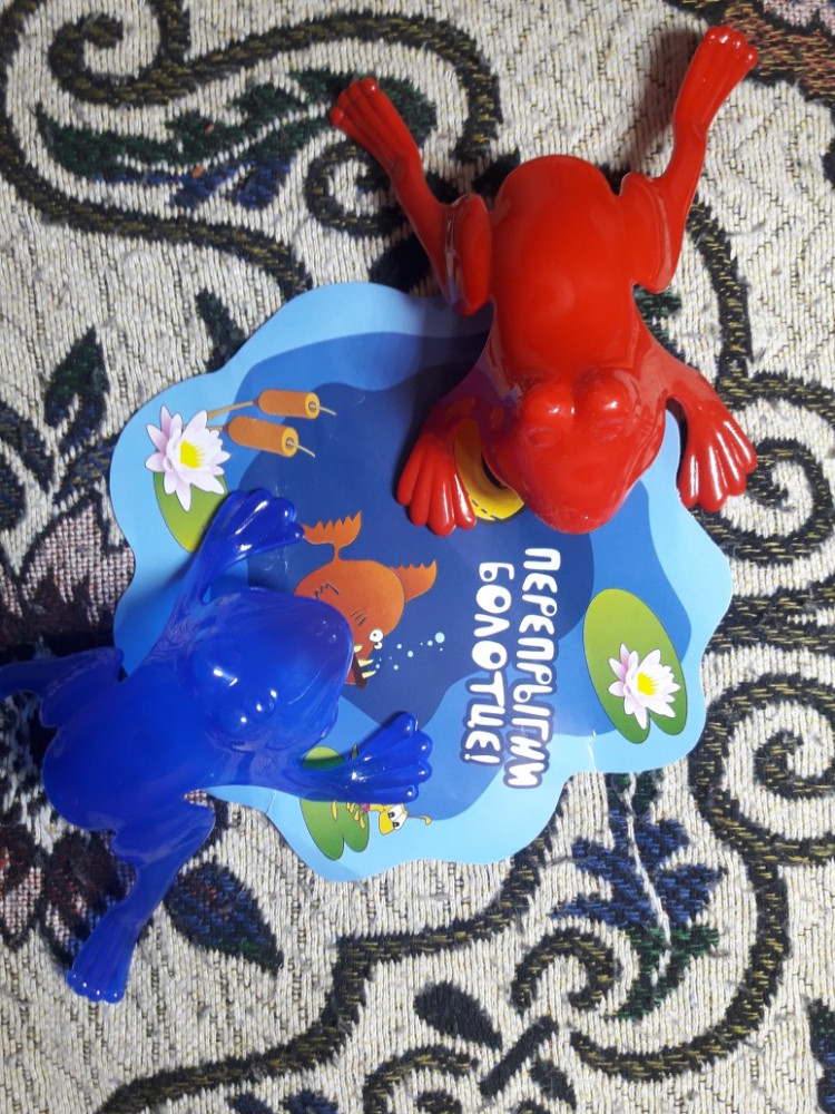 Хорошие, среднего размера лягушки. Достаточно тугие для пальцев. При прыжке переворачиваются. Пластик без запаха. Цвета яркие. Детям нравятся.