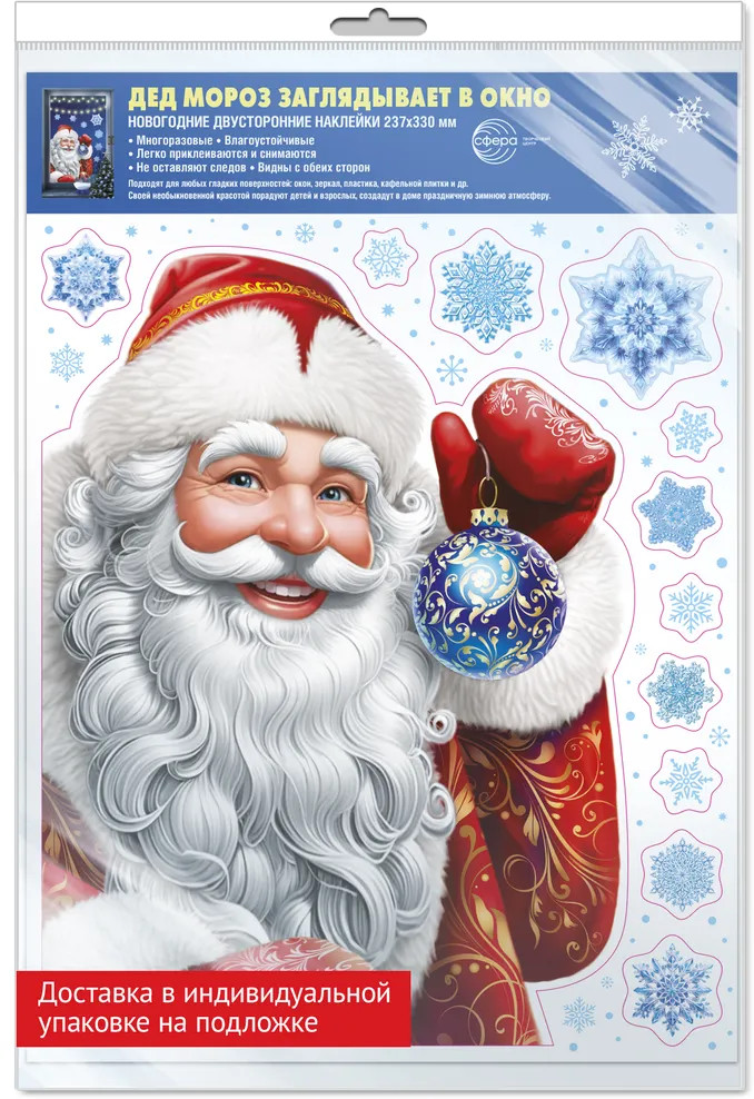Наклейки для окон «Дед Мороз заглядывает в окно»новинка