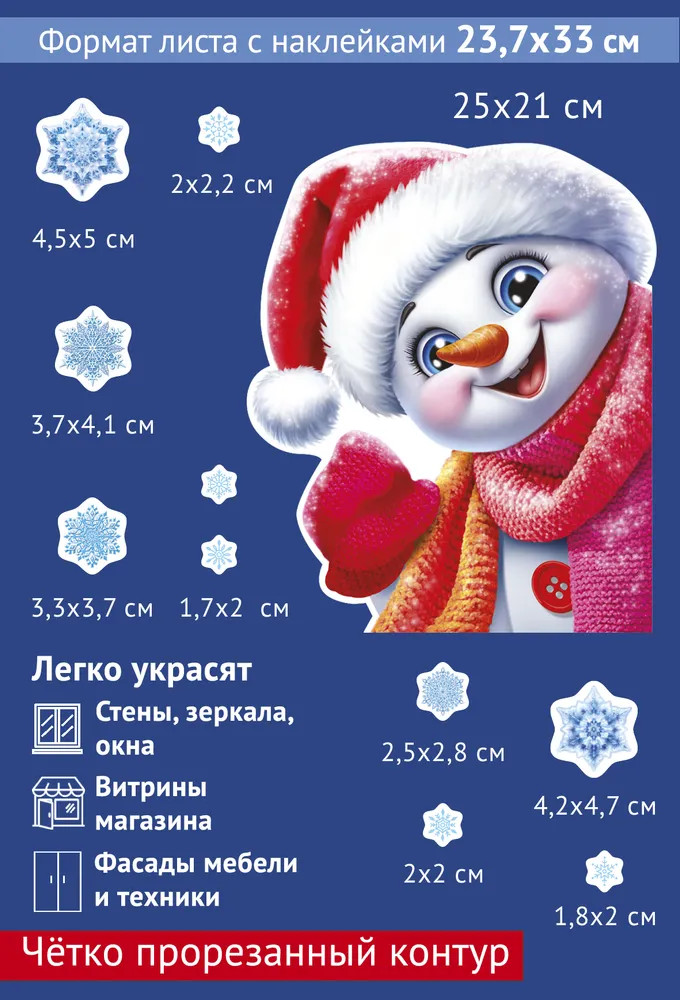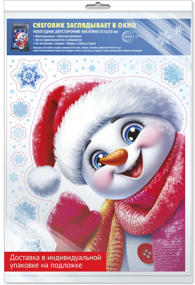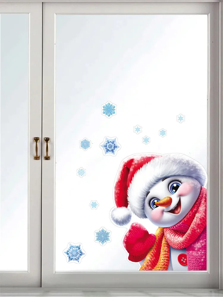 Наклейки для окон «Снеговик в колпачке заглядывает в окно»новинка