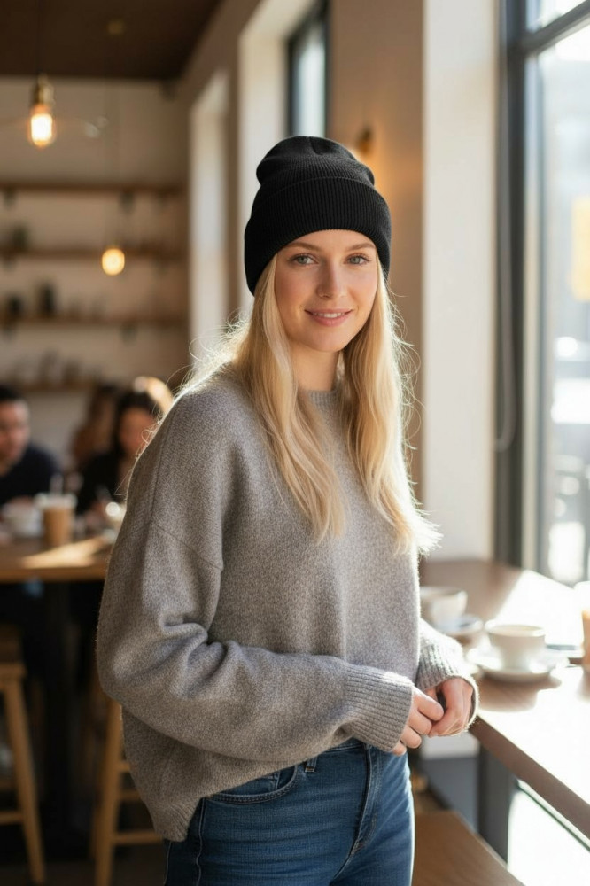 Универсальная шапка-бини — стильный аксессуар для повседневного образа, который подойдёт и мужчинам, и женщинам.