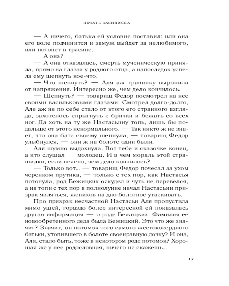 💳 Оплатить за товар можно при получении 🇰🇿 Есть бесплатная доставка по Казахстану от 1 дня 🎁 Копите бонусы с каждой покупки Серия: Татьяна Корсакова. Королева мистического романа. Новое оформление В имение «Полозовы ворота» Алю пригласил родной дед, о существовании которого молодая женщина и не подозревала. Она воспитывалась в детдоме и поэтому очень обрадовалась появлению родственника. Кстати, чрезвычайно своевременному — ей как раз необходимо спрятаться и затаиться. Однако, попав в имение, Аля понимает: что-то здесь нечисто. В этих краях существует легенда о пробуждении Василиска, который явится затем, чтобы забрать причитающееся ему. Неужели дед пригласил к себе внучку с какой-то тайной целью?.. |