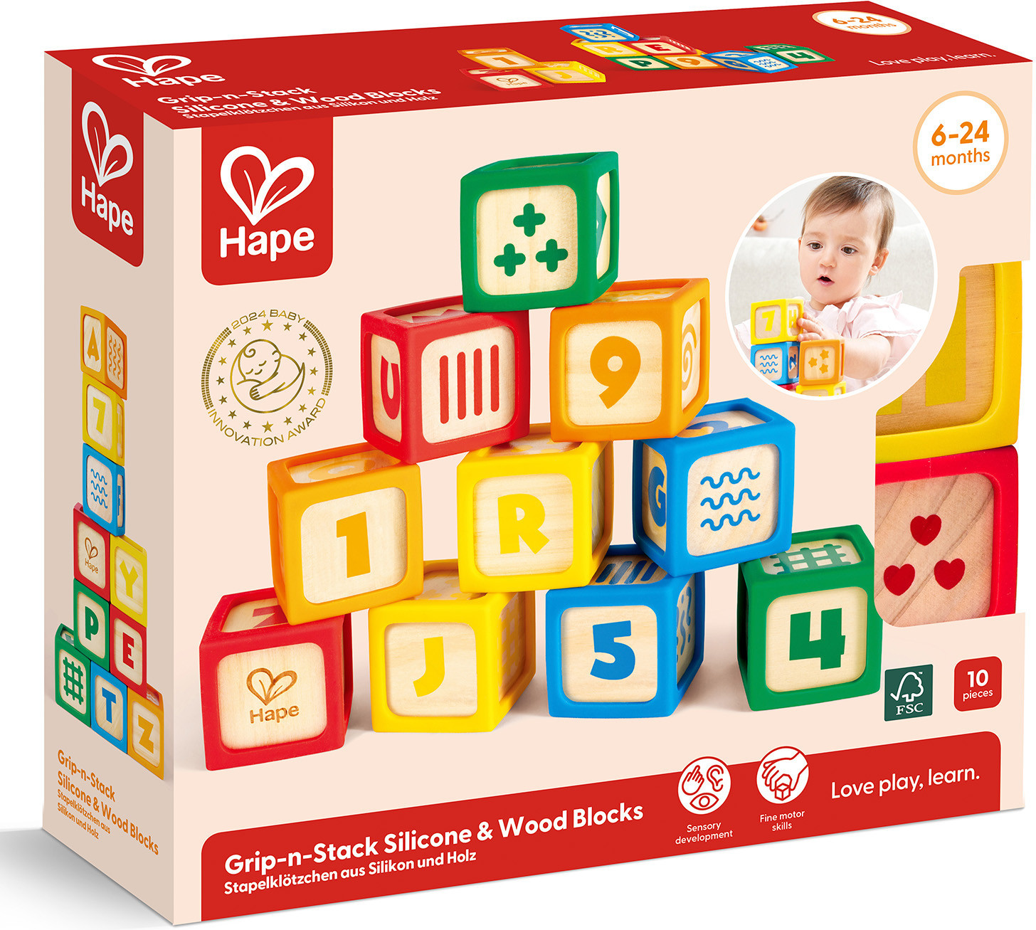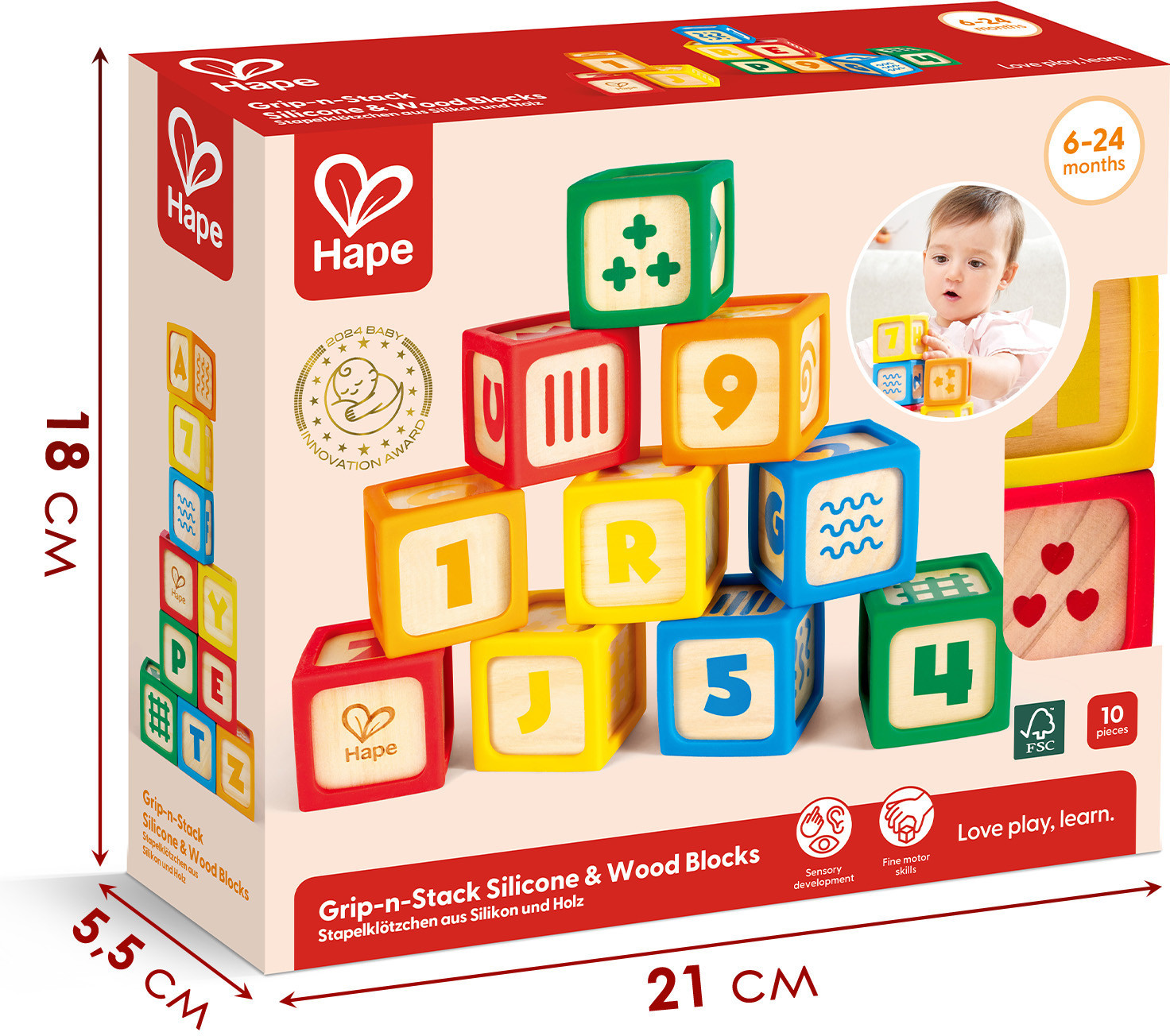 | Hape Набор детских кубиков деревянных в силиконовых чехлах
