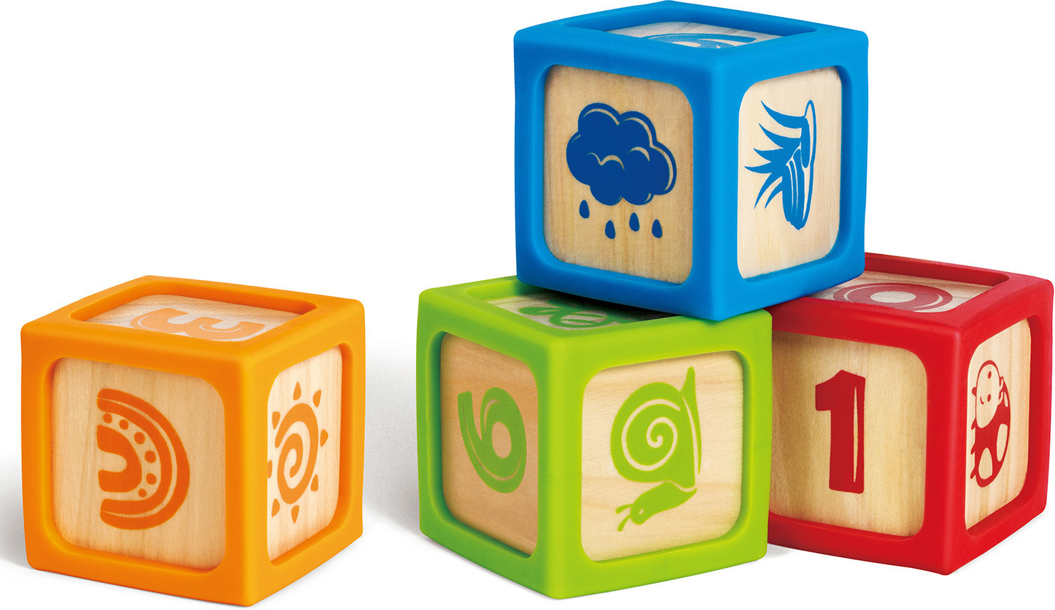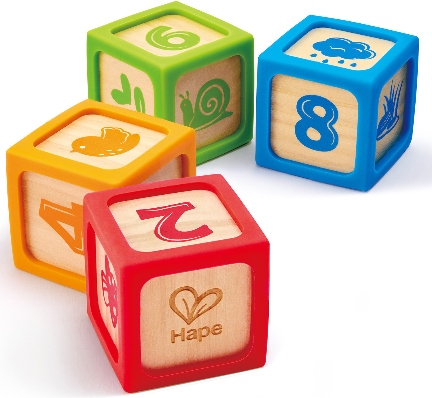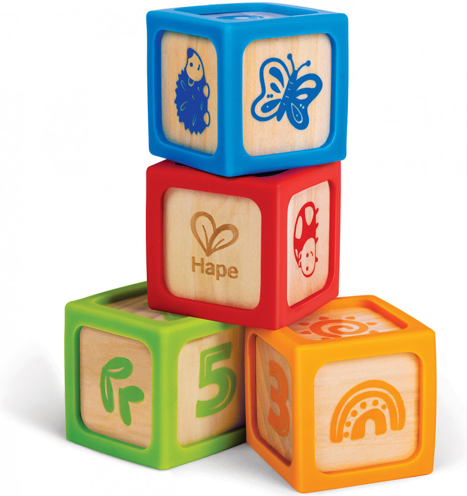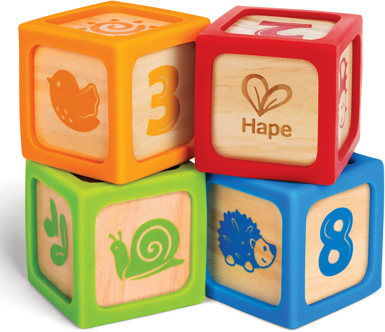 | Hape Набор детских кубиков деревянных в силиконовых чехлах