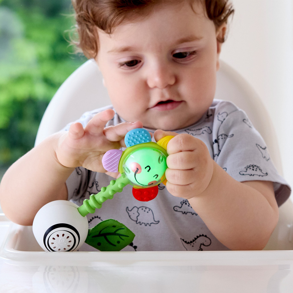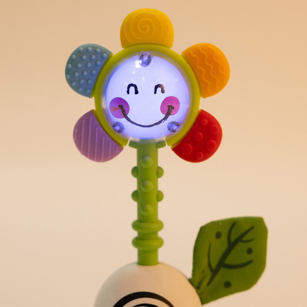 Погремушка Светящийся Цветок — это яркий и увлекательный инструмент для развития вашего малыша! С каждым встряхиванием и прикосновением сердцевина цветка загорается яркими цветами, привлекая внимание малыша и создавая волшебную атмосферу. Разнообразие текстур помогает стимулировать органы чувств. Эргономичная форма и мягкое силиконовое покрытие игрушки облегчает захват и манипуляции, способствуя развитию мелкой моторики и самостоятельности малышей, которые учатся держать предметы. Шум, создаваемый погремушкой при встряхивании, мягко воздействует на слух малыша, помогая развивать его восприятие. Эта игрушка подарит вашему ребёнку массу удовольствия и пользы!