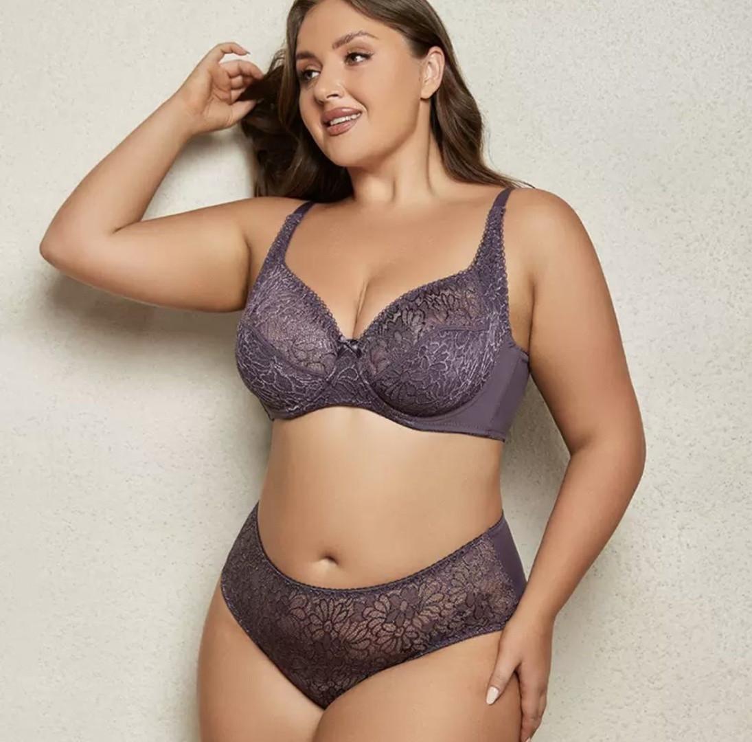 Роскошный однотонный комплект летнего нижнего белья для великолепных пышных форм, для женщин полных красоты и женственности! Классический набор женского нижнего белья с кружевом состоит из максимально комфортного бюстгальтера и глубоких трусиков слипов. Красивый дышащий женский лифчик из качественного материала с подкладкой из хлопка без поролона прекрасно поддерживает большую грудь, не передавливая ее. Легкий бюстгальтер большого размера на косточках безупречно смотрится на груди за счет оригинального фасона балконет. Мягкая глубокая чашка оформлена нежным кружевом. Обеспечивает надежную поддержку и правильно распределяет грудь внутри чашки. Боковая вставка формирует и собирает грудь к центру.