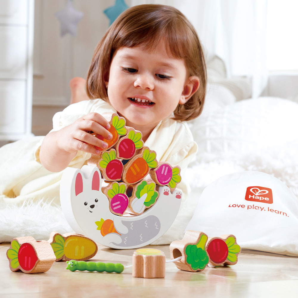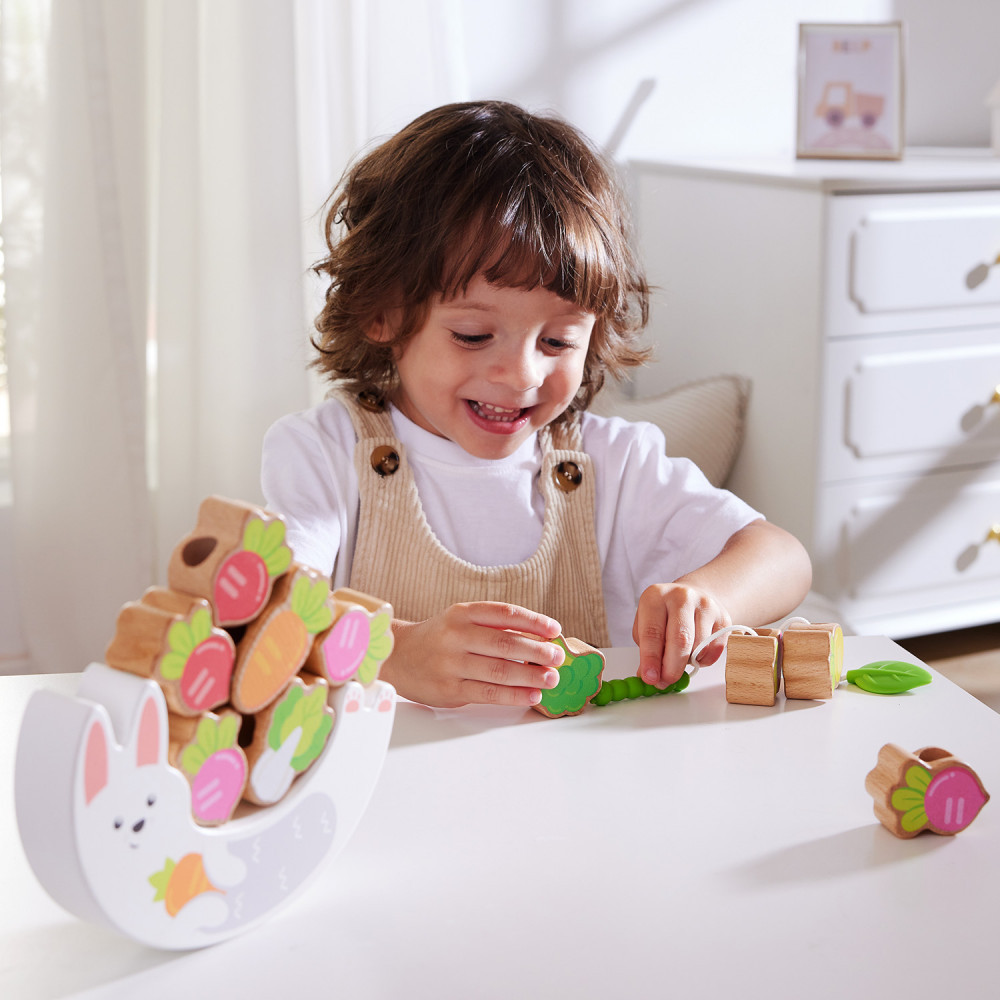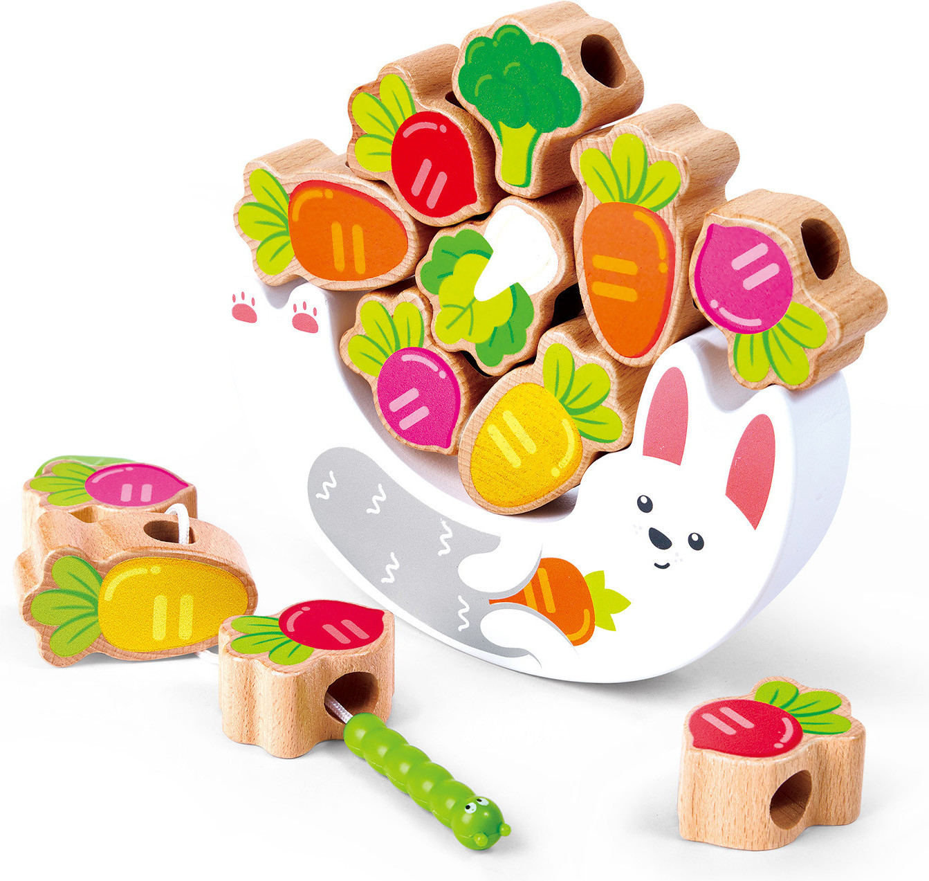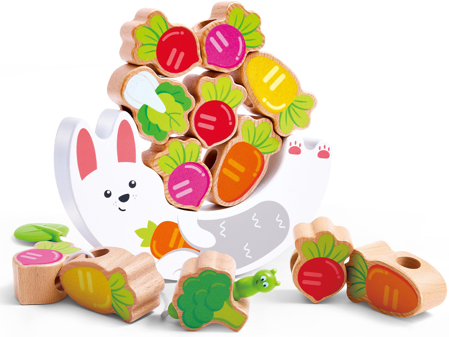 • игра-балансир — стройте башенки из морковок, брокколи и капусты, развивая навык держать равновесие;