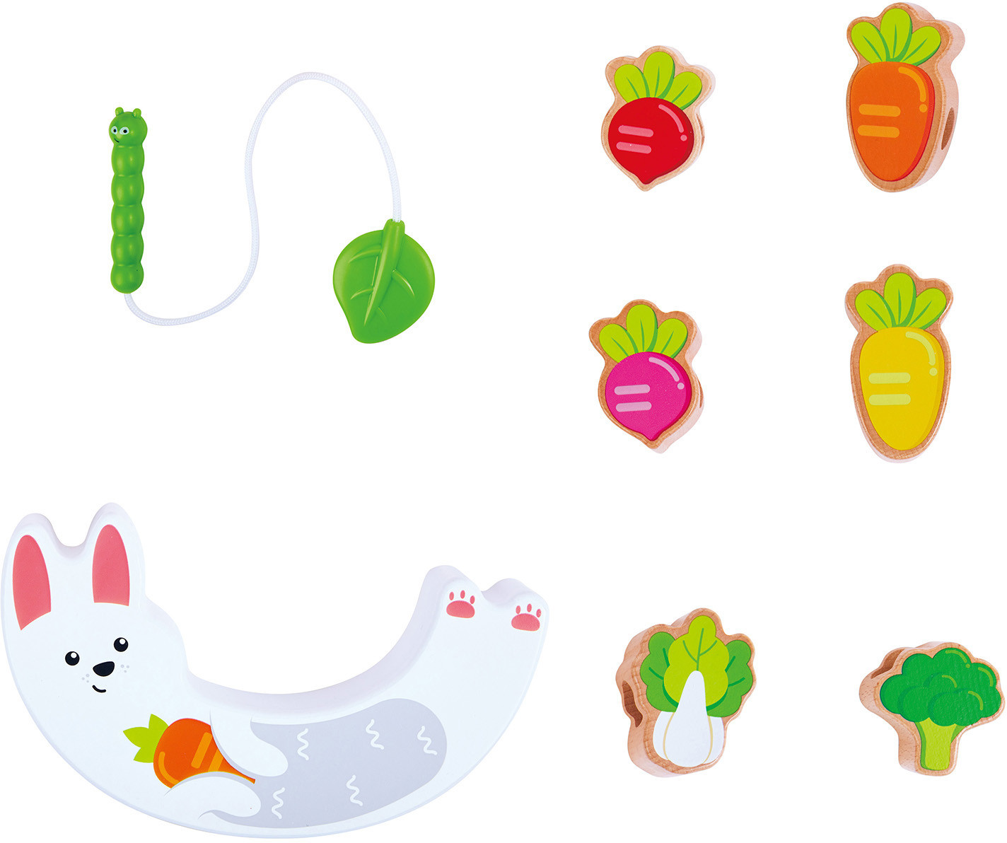 Комплектация: основа-зайчик, 6 длинных морковок, 4 коротких морковки, брокколи, капуста, шнурок-гусеница.