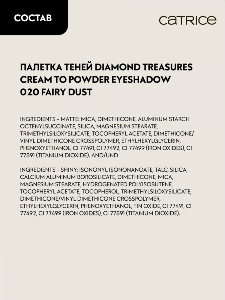 Catrice Палетка теней для век «Diamond Treasures Cream to Powder Eyeshadow», оттенок 020 Fairy Dust