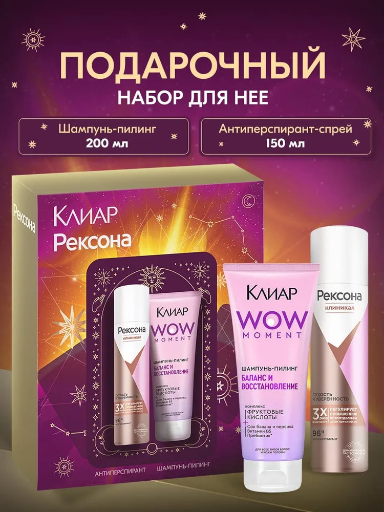 💳 Оплатить за товар можно при получении 🇰🇿 Есть бесплатная доставка по Казахстану от 1 дня 🎁 Копите бонусы с каждой покупки Подарочный набор уходовой косметики для женщин — это отличный выбор для презента на любой праздник и просто так. Средство-пилинг для волос Клиар Баланс и восстановление глубоко очищает кожу головы, удаляя себум, остатки стайлинга и сухого шампуня. Очищающий шампунь для волос содержит 2.7%’ фруктовых кислот, которые способствуют обновлению клеток кожи*. В состав продукта входят также: витамин В5, пребиотик, сок банана и персика. Шампунь-пилинг для волос имеет приятный аромат ванили с нотками фруктов. |