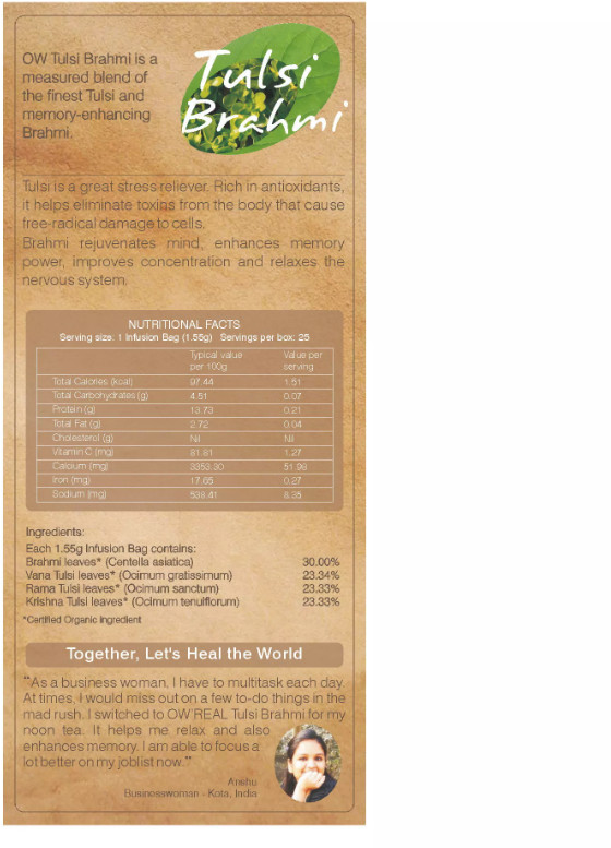 Секрет эффективности чая с Тулси и Брахми кроется в его активных компонентах. Брахми (Centella asiatica) — известное аюрведическое средство, помогает улучшить умственную деятельность, укрепляет память и повышает уровень концентрации. Его успокаивающее действие способствует снятию напряжения и стрессов, позволяя вашему разуму находиться в идеальной гармонии.