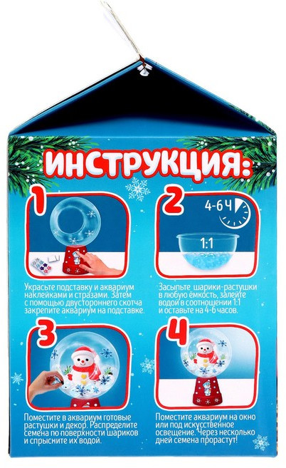 С этим набором ребёнок сделает свой флорариум. Малыш соберёт поделку: украсит её, вырастит шарики с гидрогелем, а также посадит настоящую траву и понаблюдает за её ростом. Как сделать флорариум. Украсьте подставку и аквариум наклейками и стразами. Затем с помощью двусторонней клейкой ленты закрепите аквариум на подставке. Засыпьте шарики-растушки в любую ёмкость, залейте водой в соотношении 1:1 и оставьте на 4–6 часов. Поместите в аквариум готовые растушки и декор. Распределите семена по поверхности шариков и сбрызните их водой. Поместите аквариум на окно или под искусственное освещение. Через несколько дней семена прорастут! |