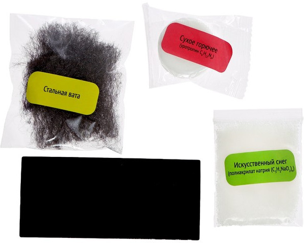 Набор для опытов «Эврики» поможет провести простые эксперименты и познакомиться со свойствами различных химических элементов. Ребёнок сам проведёт 20 опытов и удивит друзей! Новый год на других планетах. Белый медведь. Химическая грелка. Загадка северного сияния. Новогоднее послание. Цветные чудеса. Химическое противостояние. Новогодние искры. Согретый теплом. Искусственный снег. Ёлочная игрушка. Сказочный сад. Ледниковый период. Цветное пламя. Зимний конструктор. Праздничный фонтан. Заколдованные змейки. Неоновые татуировки. Растущие зверюшки. Волшебный воздушный шарик. |