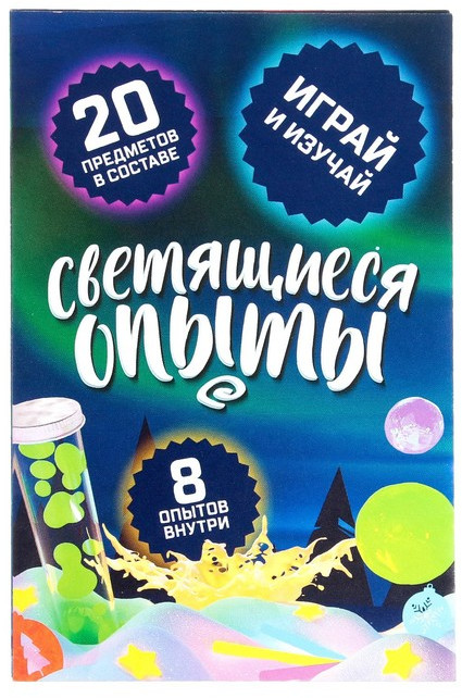 Набор для опытов «Светящиеся опыты» — то, что нужно для полезного и интересного досуга! Такой подарок поможет ребёнку скрасить ожидание Нового года, а также позволит провести целых 8 увлекательных опытов! Ребёнок познакомиться со свойствами различных химических элементов и узнает много нового и интересного. Какие опыты вас ждут. Сверкающая лава-лампа. Сказочная ёлочка. Мигающий попрыгунчик. Удивительные чернила. Волшебная палочка. Магический грим. Новогодние игрушки. Неоновые татуировки. Увлекательно и полезно. Занимательные эксперименты помогут развить мышление и логику, привить стремление проникать в суть вещей и пробудят желание открывать новое. Играйте и развивайтесь с «Эвриками»! Набор для опытов рекомендован детям от 6 лет. |