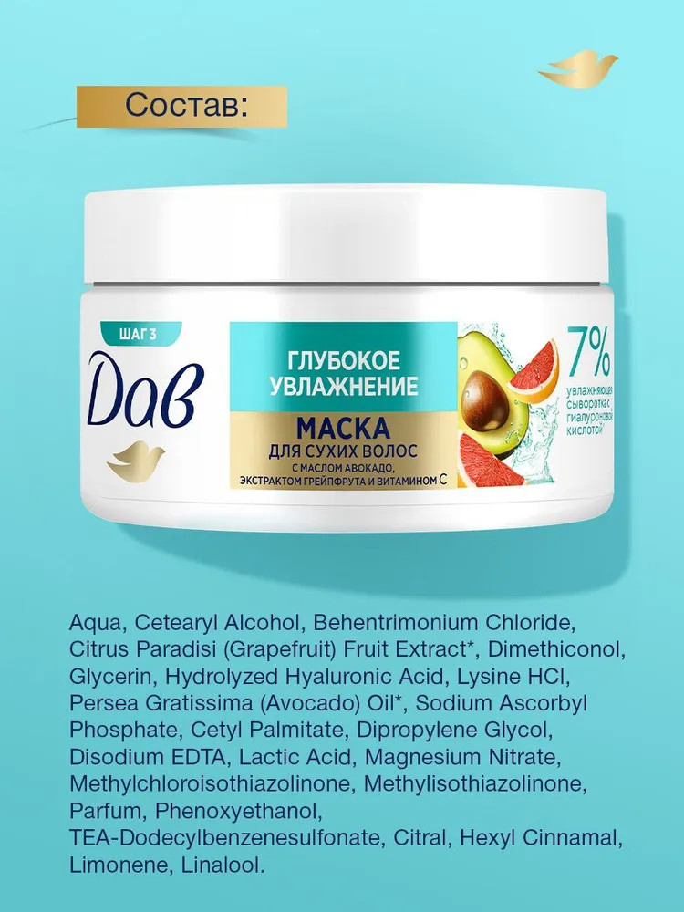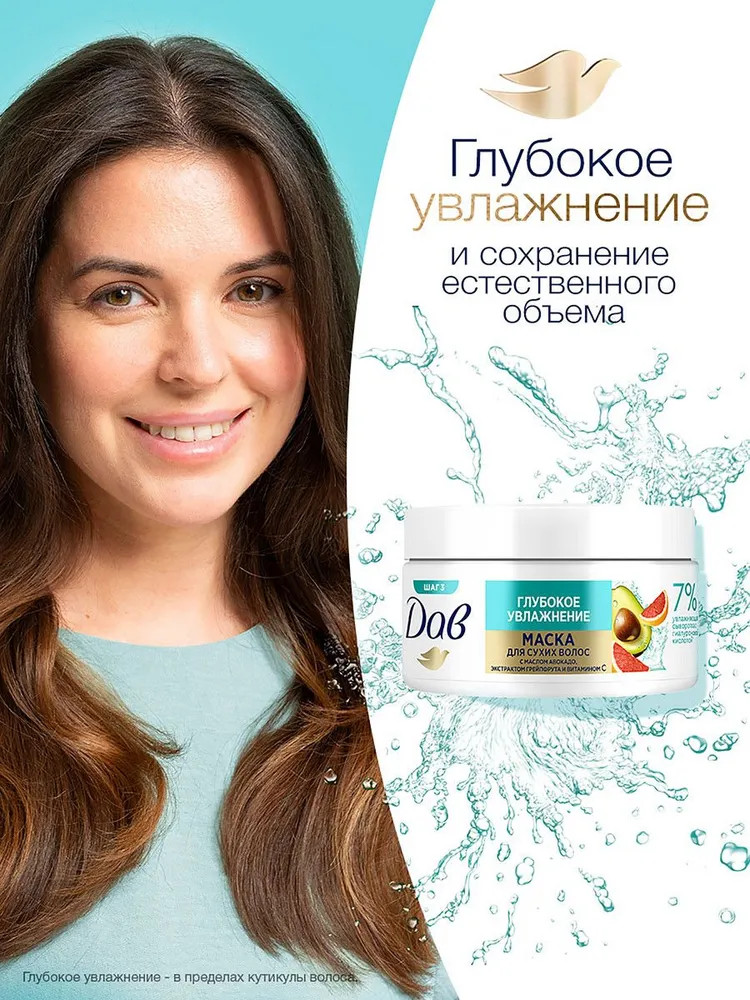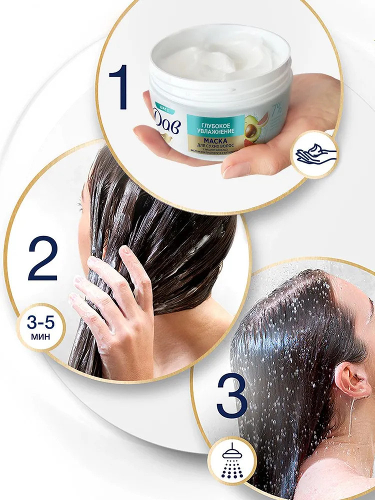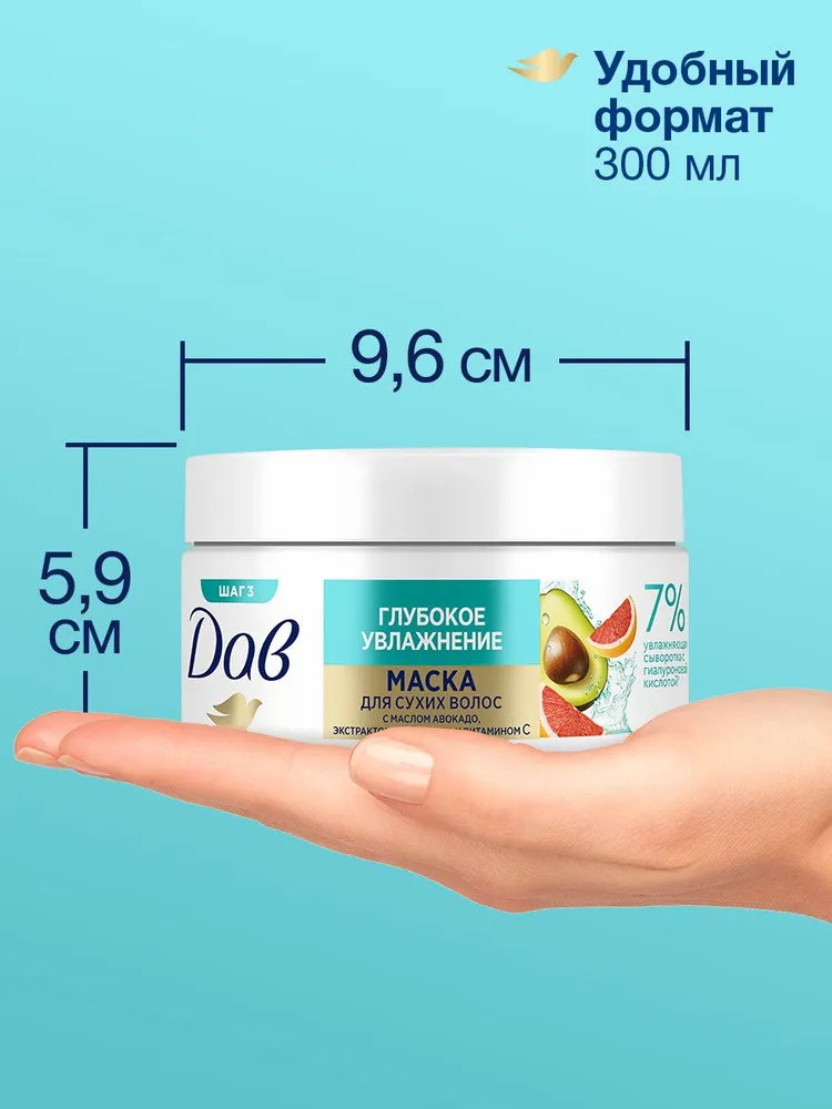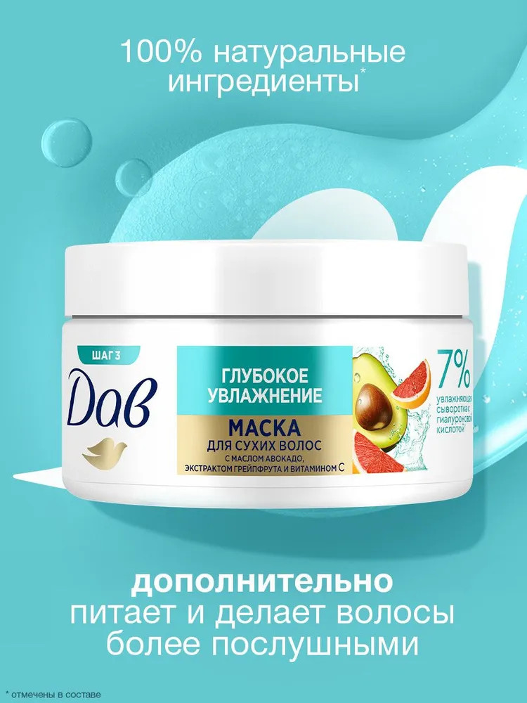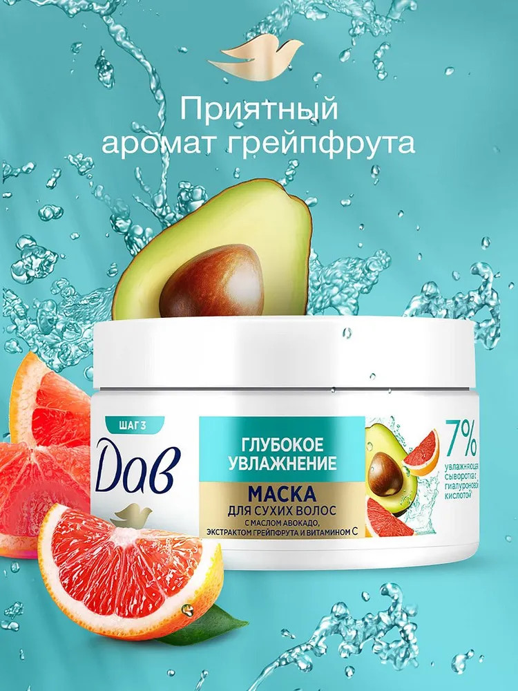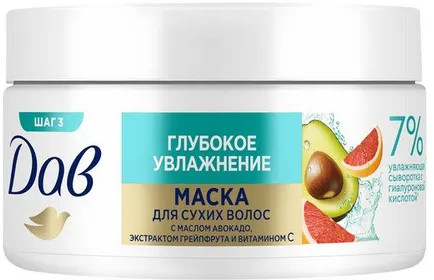 Dove Маска для сухих волос с гиалуроновой кислотой и маслом авокадо
