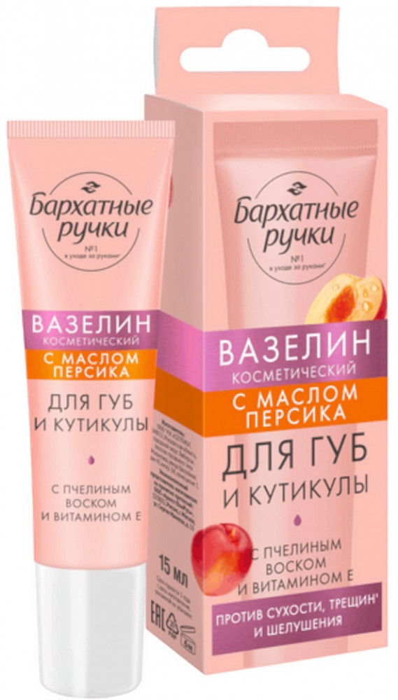 Бархатные ручки Вазелин для губ и кутикулы с маслом персика
