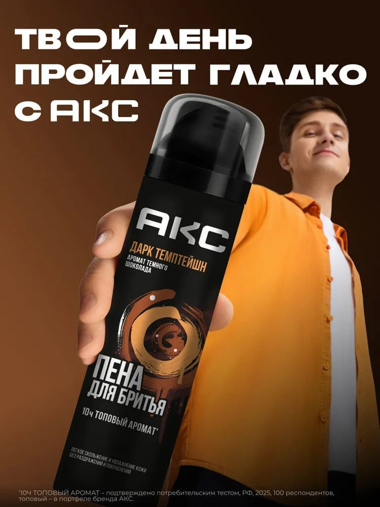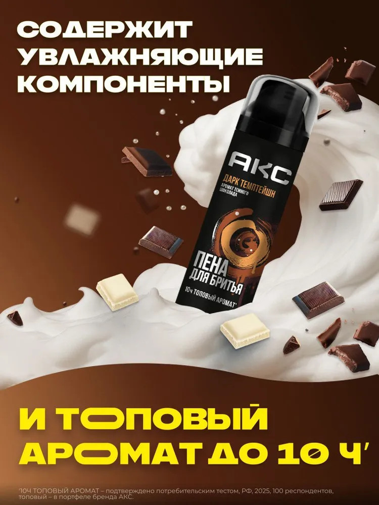 Пена для бритья для мужчин увлажняющая Акс «Дарк Темптейшн» — это идеальное косметическое средство для ухода за кожей с топовым запахом темного шоколада, разработанное для взрослых мужчин и подростков с 14 лет с любым типом кожи лица. Формула средства обогащена питающими и увлажняющими компонентами, для того чтобы процесс бритья и твой день прошли гладко. Пенка для бритья мужская обеспечивает увлажнение кожи и легкое скольжение бритвы, что позволяет избежать появления раздражения и покраснений. |