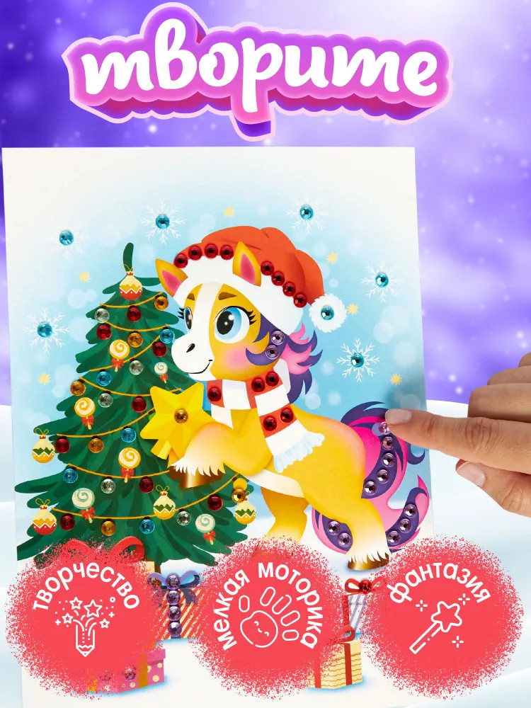 Рисунок из страз «Лошадка» не только развлекает, но и способствует развитию полезных навыков. Работа с деталями стимулирует мелкую моторику рук, координацию движений и глазомер. Подбор цветов и размещение страз развивают художественный вкус, воображение, творческое мышление, усидчивость и концентрацию внимания.