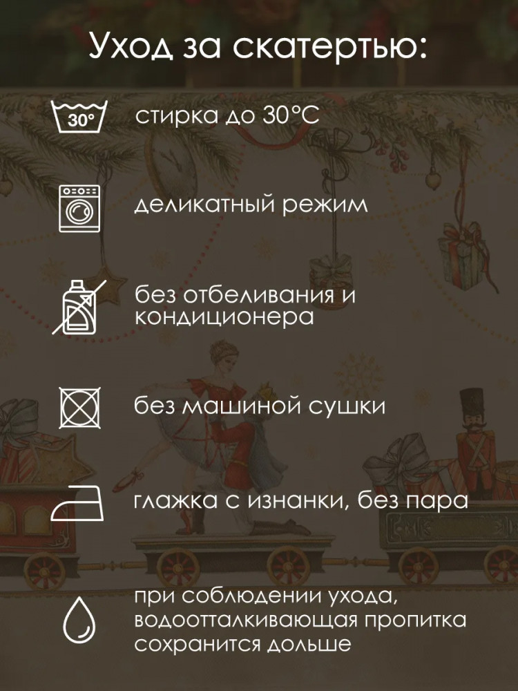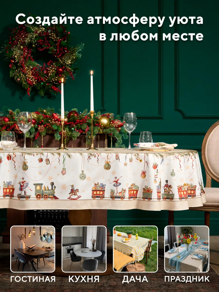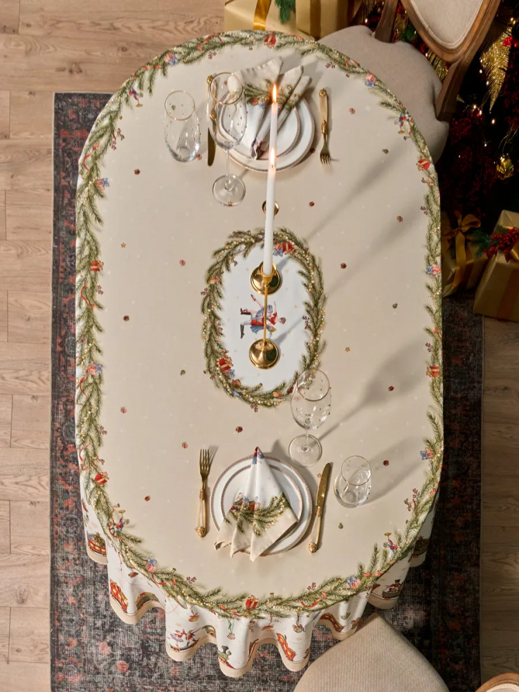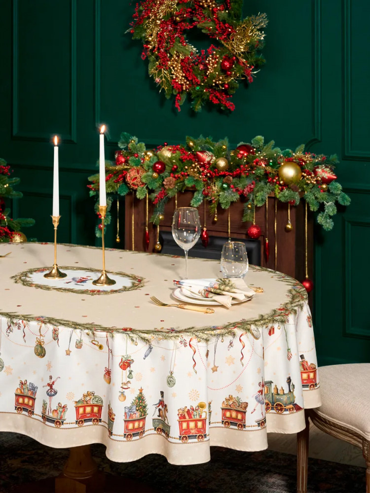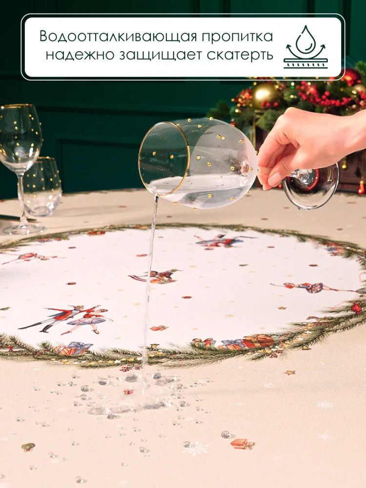 Овальная скатерть создана производителем Lefard по эксклюзивному дизайну для серии посуды «Щелкунчик» бренда Lefard. Прекрасно подойдет для любого стола. Изготовлена из плотного хлопкового текстиля с пропиткой, за счёт которой с неё легко убрать пролитую жидкость. Плотность ткани составляет 190 г\м2, она имеет приятную структуру и называется твил. Состав ткани 100% хлопок с водоотталкивающей пропиткой. Наша водонепроницаемая скатерть легка в уходе, она не впитывает мгновенно жидкость на обеденном столе и избавит вас от хлопот с отстированием пятен после застолья. Ее можно стирать и при этом она не теряет свою текстуру и цвет даже после многих стирок. Главными преимуществами твила являются износостойкость, плотность и лёгкий красивый блеск. Эта ткань не заламывается и не сильно мнется. Скатерть из твила выглядит аккуратно и элегантно. Такая скатерть станет отличным дополнением к интерьеру вашей кухни.