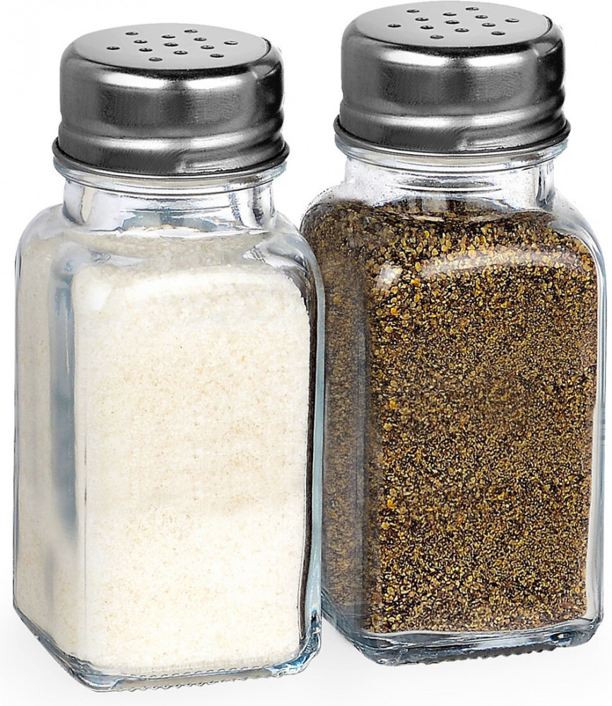 Емкость солонок выполнена из прозрачного пищевого стекла (натрий-кальций-силикатного), что позволяет видеть количество содержимого в емкости. Oбъем одной емкости составляет 80 мл (± 5 мл). Изделия оснащены откручивающейся крышкой из нержавеющей стали с отверстиями, которые обеспечивают контролируемую порционную подачу специй.