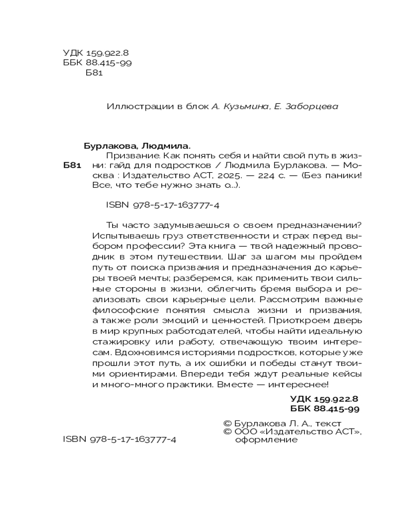 💳 Оплатить за товар можно при получении 🇰🇿 Есть бесплатная доставка по Казахстану от 1 дня 🎁 Копите бонусы с каждой покупки Серия: Подростковый вопрос Ты часто задумываешься о своем предназначении? Испытываешь груз ответственности и страх перед выбором профессии? Эта книга — твой надежный проводник в этом путешествии. Шаг за шагом мы пройдем путь от поиска призвания и предназначения до карьеры твоей мечты; разберемся, как применить твои сильные стороны в жизни, облегчить бремя выбора и реализовать свои карьерные цели. Рассмотрим важные философские понятия смысла жизни и призвания, а также роли эмоций и ценностей. Приоткроем дверь в мир крупных работодателей, чтобы найти идеальную стажировку или работу, отвечающую твоим интересам. Вдохновимся историями подростков, которые уже прошли этот путь, а их ошибки и победы станут твоими ориентирами. Впереди тебя ждут реальные кейсы и много-много практики. Вместе — интереснее! |