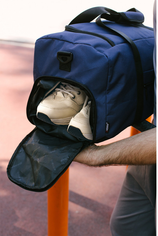 Спортивная сумка Heikki Move Plus — идеальный помощник для тренировок, поездок и активного отдыха. Насыщенный синий цвет, продуманная конструкция с удобным отсеком для обуви и водоотталкивающей тканью обеспечивает комфорт в любых условиях. Спортивная сумка Heikki Move Plus — практичное и стильное решение для активного образа жизни. Выполненная в насыщенном синем цвете, она подчеркнёт вашу индивидуальность и отлично впишется в любой спортивный гардероб. Размеры сумки составляют 28×50×23 см, что обеспечивает удобное хранение всего необходимого для тренировок и путешествий.