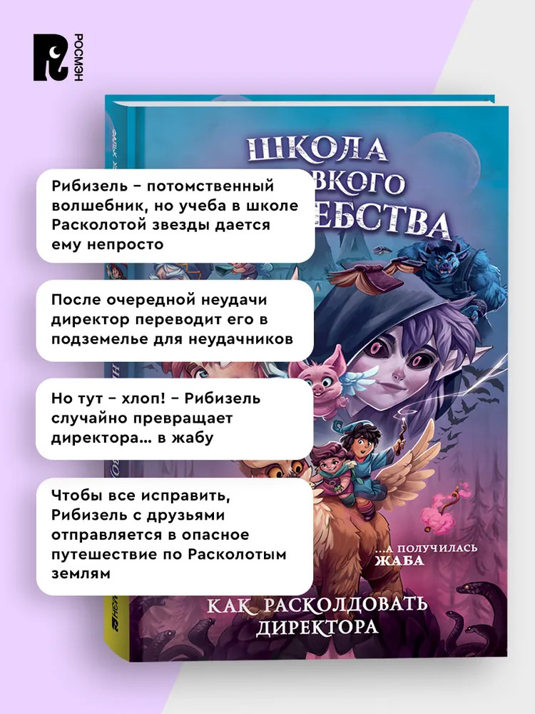 💳 Оплатить за товар можно при получении 🇰🇿 Есть бесплатная доставка по Казахстану от 1 дня 🎁 Копите бонусы с каждой покупки Веселое приключенческое фэнтези для детей и подростков с харизматичными героями, красочными сюжетными иллюстрациями и элементами геймификации. Рибизель — потомственный волшебник, но учеба в школе Расколотой звезды дается ему непросто. Когда мальчик волнуется, он колдует лягушек — случайно и повсеместно. А волнуется он почти всегда. После очередной неудачи его вызывают к директору и сообщают новость: Рибизеля переводят в подземелье для неудачников. И — хлоп! — Рибизель случайно превращает директора школы... в жабу. |