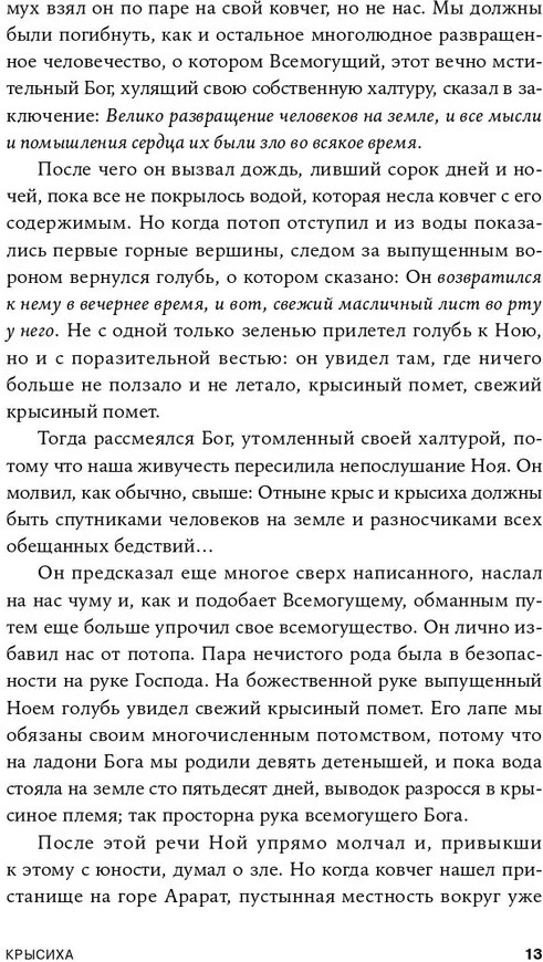 💳 Оплатить за товар можно при получении 🇰🇿 Есть бесплатная доставка по Казахстану 🎁 Копите бонусы с каждой покупки Апокалиптический роман немецкого писателя Гюнтера Грасса, построенный на диалоге рассказчика с подаренной ему крысой. Он путешествует по опустошенной Земле, а она излагает ему историю гибели человечества и захвата власти на Земле крысами — единственными выжившими в Данциге после применения нейтронных бомб и построившими собственную цивилизацию, основанную на солидарности. Рассказчик спорит с новой картиной мира, выдвигая свои теории, которые становятся возможными сценариями для фильмов медиамагната, героя «Жестяного барабана» Оскара Мацерата: о художнике Лотаре Мальскате и проблеме подлинности, о мертвых лесах, о пяти женщинах, которые отправляются исследовать местную популяцию медуз в Балтийском море и тайно ищут легендарную Винету как место женской утопии. |