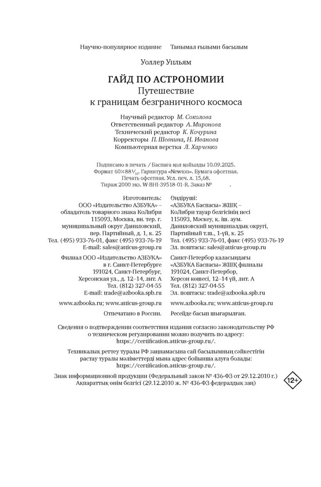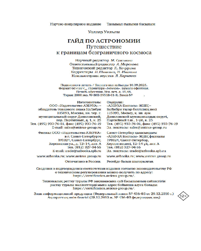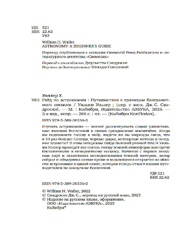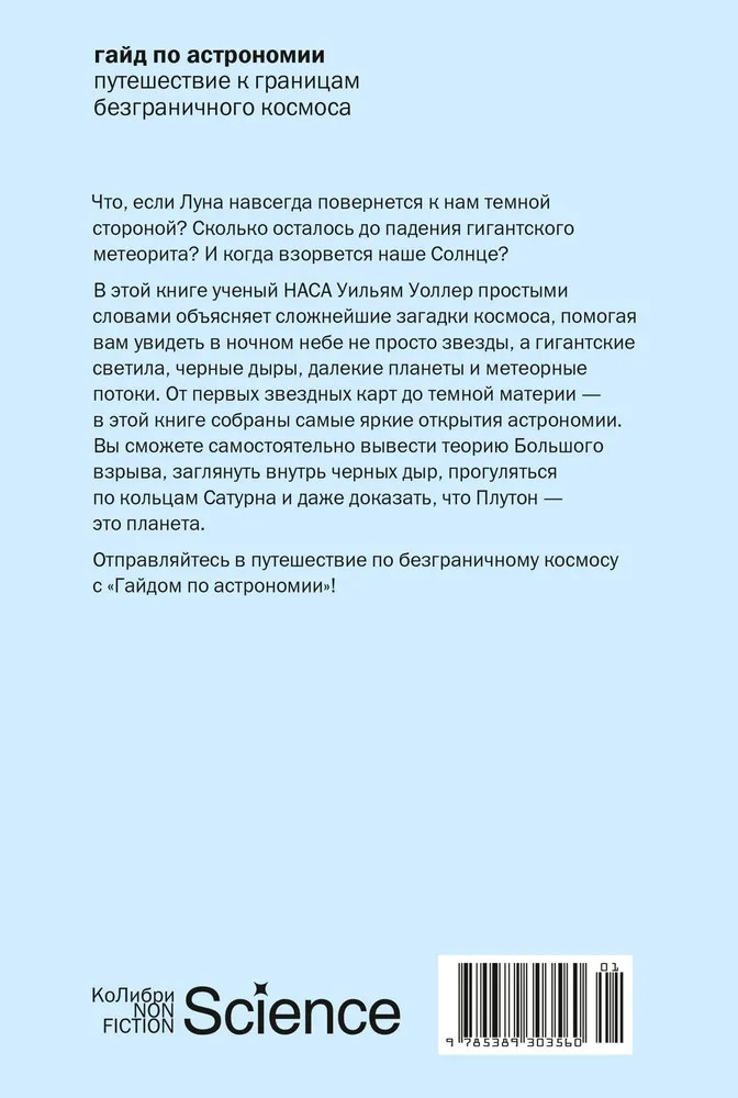 💳 Оплатить за товар можно при получении 🇰🇿 Есть бесплатная доставка по Казахстану от 1 дня 🎁 Копите бонусы с каждой покупки Серия: КоЛибри NonFiction Изучать астрономию — значит рассматривать самые удивительные явления Вселенной в самых грандиозных масштабах. Когда вы поднимаете голову к небу, видите ли вы мириады звезд, что в 10 раз больше Солнца, черные дыры, метеорные потоки и соседние планеты? В этом авторском гайде бывший ученый НАСА Уильям Уоллер проведет вас сквозь толщу земной атмосферы навстречу бесконечному и невероятному космосу. Начиная с первых звездных карт и заканчивая исследованиями темной материи, автор собрал и объединил самые яркие и выдающиеся открытия из области астрономии в одной книге, которая теперь станет вашим путеводителем по закоулкам Вселенной. |