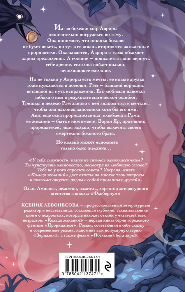 💳 Оплатить за товар можно при получении 🇰🇿 Есть бесплатная доставка по Казахстану 🎁 Копите бонусы с каждой покупки Серия: Прорицатели Из-за болезни мир Авроры окончательно погрузился во тьму. Она понимает, что никогда больше не будет видеть, но тут в ее жизнь вторгаются загадочные прорицатели. Оказывается, Аврора и сама обладает даром предвидения. А главное — появляется шанс вернуть себе зрение, если она найдет кольцо, исполняющее желание. Но не только у Авроры есть мечты: ее новые друзья тоже нуждаются в помощи. Рэм — бывший воришка, вставший на путь исправления. Его любимая навсегда забыла о нем в результате магической ошибки. Трижды в неделю Рэм заново с ней знакомится и мечтает, чтобы она наконец запомнила хотя бы его имя. Аня, еще одна прорицательница, влюблена в Рэма, ее желание — быть с ним вместе. Ворон Яр, противник прорицателей, ищет кольцо, чтобы вылечить своего смертельно больного брата. Но кольцо может исполнить только одно желание... |