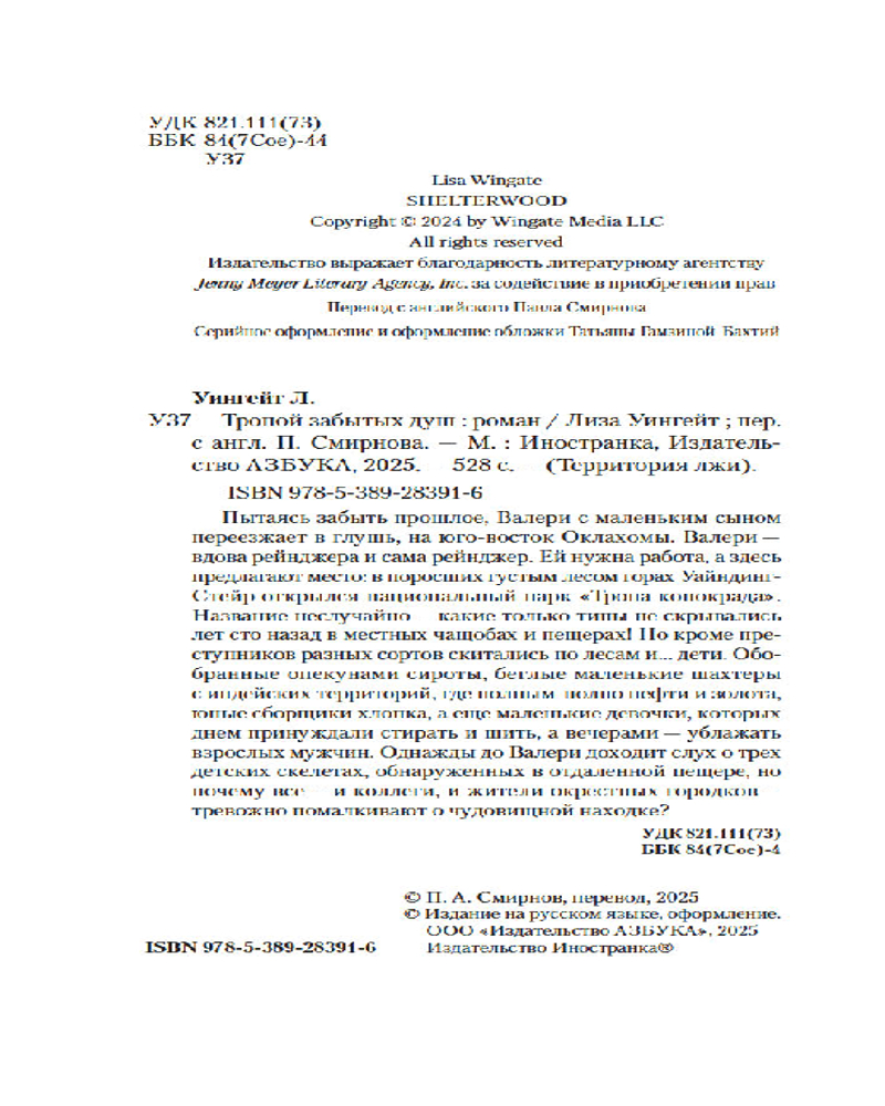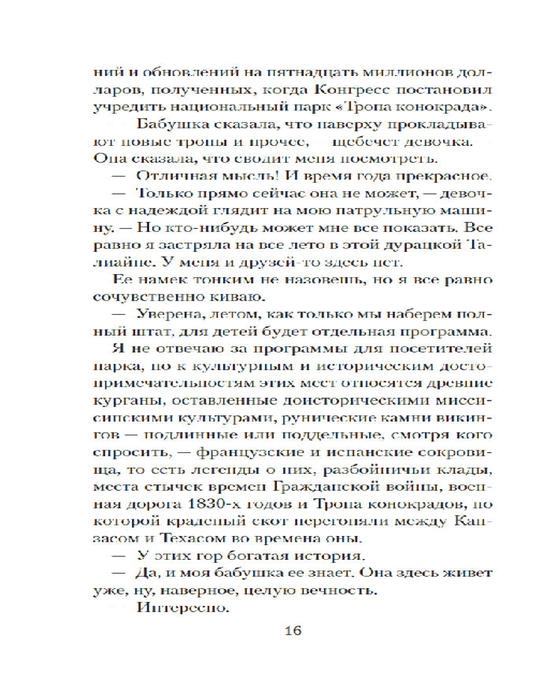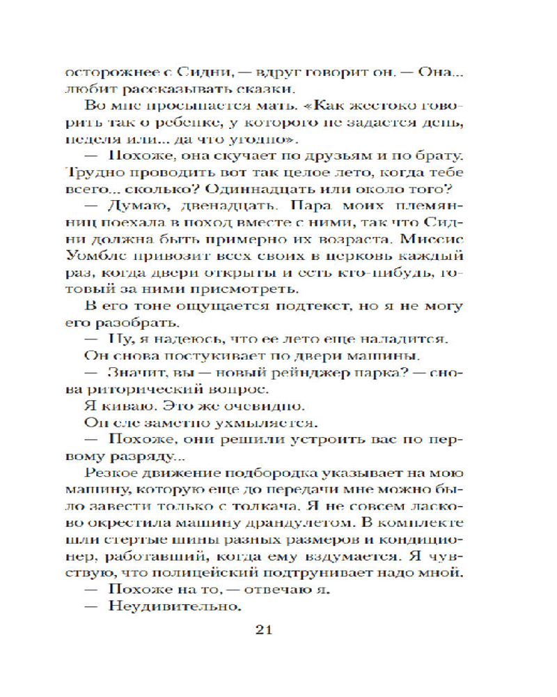 💳 Оплатить за товар можно при получении 🇰🇿 Есть бесплатная доставка по Казахстану от 1 дня 🎁 Копите бонусы с каждой покупки Серия: Территория лжи Пытаясь забыть прошлое, Валери с маленьким сыном переезжает в глушь, на юго-восток Оклахомы. Валери — вдова рейнджера и сама рейнджер. Ей нужна работа, а здесь предлагают место: в поросших густым лесом горах Уайндинг-Стейр открылся национальный парк «Тропа конокрада». Название неслучайно — какие только типы не скрывались лет сто назад в местных чащобах и пещерах! Но кроме преступников разных сортов скитались по лесам и... дети. Обобранные опекунами сироты, беглые маленькие шахтеры с индейских территорий, где полным-полно нефти и золота, юные сборщики хлопка, а еще маленькие девочки, которых днем принуждали стирать и шить, а вечерами — ублажать взрослых мужчин. Однажды до Валери доходит слух о трех детских скелетах, обнаруженных в отдаленной пещере, но почему все — и коллеги, и жители окрестных городков — тревожно помалкивают о чудовищной находке? |