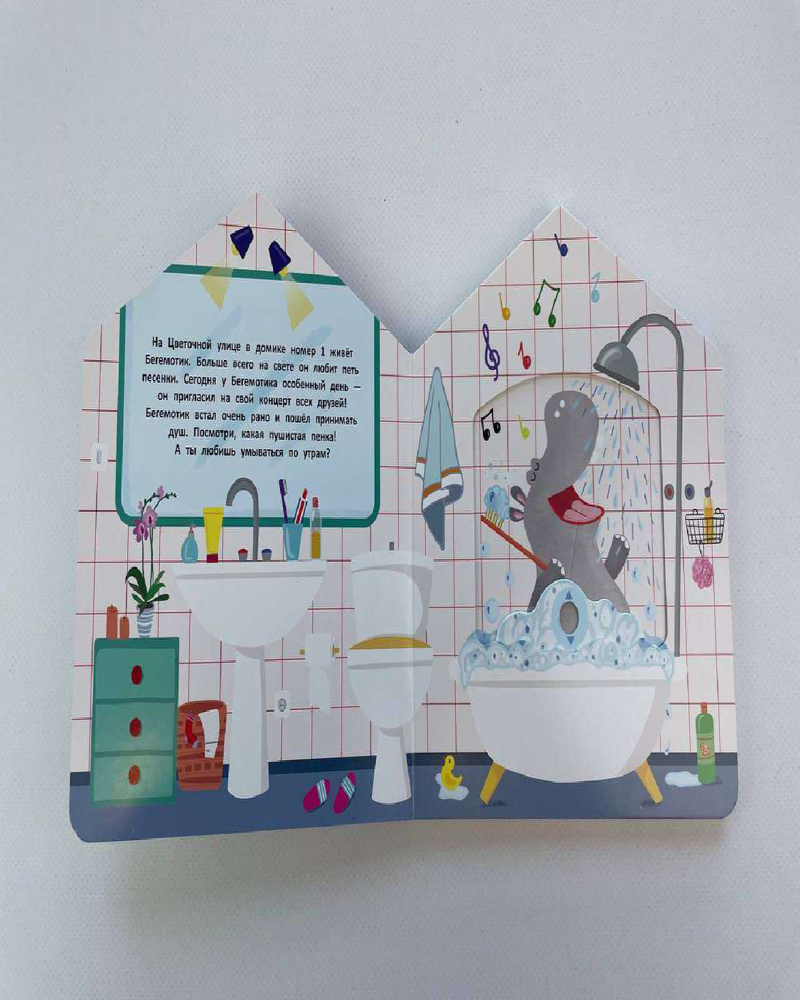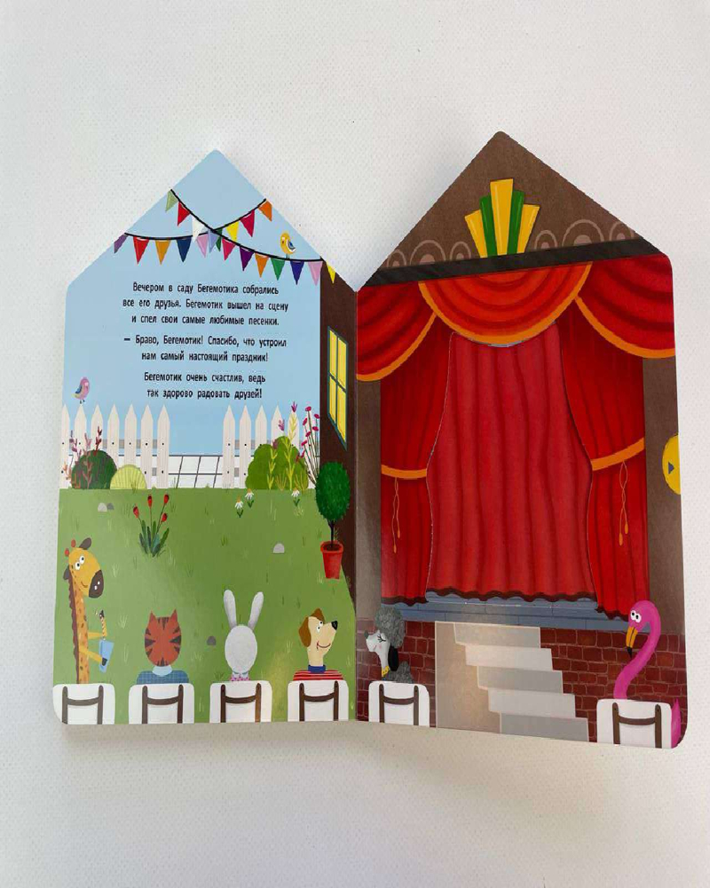 Серия: Pop-up панорамки Добро пожаловать в гости к Бегемотику! В этой интерактивной книжке-игрушке много сюрпризов: малыш сможет заглянуть в каждую комнату домика и узнать, чем любит заниматься дружелюбный хозяин. А ещё открыть шкафчик, выбрать наряд и позвать друзей на концерт. Интерактивные элементы помогают развивать мелкую моторику. Ребёнок сможет потянуть, покрутить и подвигать детали, тренируя пальчики. Книжки-игрушки предназначены для детей до 3-х лет, их приятно читать перед сном. Яркие иллюстрации, необычный формат и качественные материалы делают книгу отличным подарком по любому поводу. Соберите всю серию книжек-домиков Цветочной улицы: «В гостях у Кролика», «В гостях у Крокодильчика», «В гостях у Жирафика», «Мастерская Деда Мороза». |