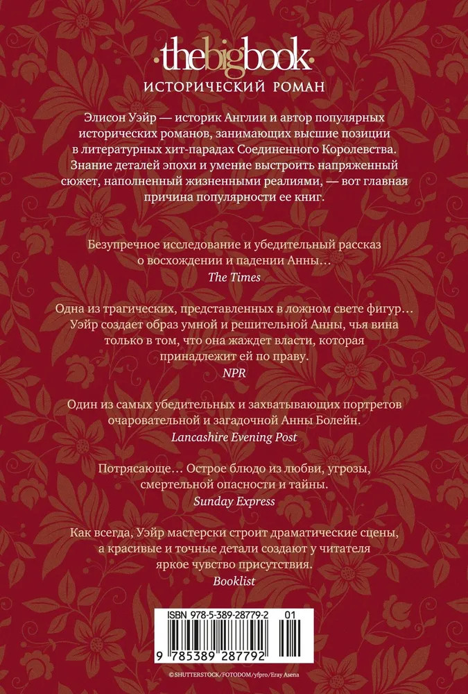 Серия: The Big Book. Исторический роман Юная Анна Болейн, получившая блестящее воспитание во Франции, была представлена английскому королю Генриху VIII и сразила его наповал. Смелая, умная, разносторонне одаренная, она убеждена, что женщины рождаются не только для того, чтобы подчиняться мужчинам. Презирая любовные интриги, Анна отказывает королю, разжигая его страсть. Но разве она не достойна короны более, чем кто-либо другой, ведь в ее жилах течет кровь Плантагенетов? Она не любит жестокого Генриха, но королевская власть для нее важнее любви. Ей не жаль заплатить за корону любую цену. Главное, действовать хладнокровно, не теряя головы... |