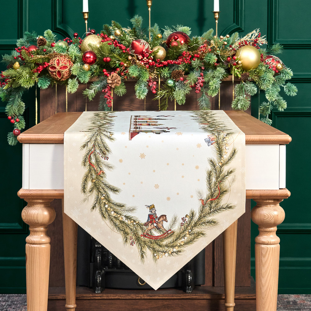 Дорожка от Lefard из коллекции «Щелкунчик» — эффектный элемент праздничного декора и практичное текстильное решение для сервировки столов. Идеально подойдёт для Нового года, Рождества, семейных торжеств. Изготовлена из 100% хлопка (твил) плотностью 190 г/м² — прочная, плотная, приятная на ощупь ткань, устойчива к износу и многократным стиркам. Благодаря водоотталкивающей пропитке поверхность не впитывает влагу, а капли воды легко удаляются салфеткой.