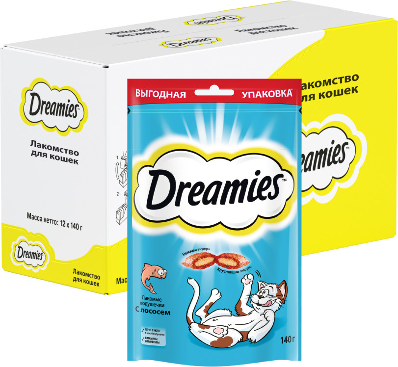 Dreamies Набор лакомств для кошек «Подушечки с лососем»