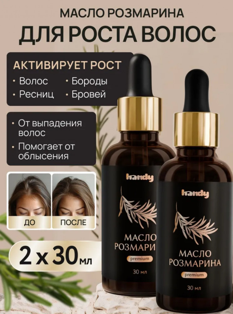 Масло розмарина Handy — это натуральное средство и активатор для роста волос. Масло стимулирует кровообращение, пробуждая волосяные фолликулы и способствуя их активному росту. Оно помогает укрепить волосы от корней до кончиков, предотвращая ломкость и выпадение, а также улучшая их текстуру и плотность.
