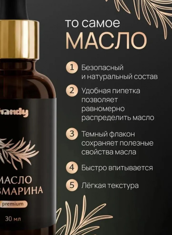 Благодаря своим антибактериальным и противовоспалительным свойствам, розмариновое масло эффективно устраняет перхоть и сухость кожи головы, даря ощущение свежести и комфорта. Натуральные компоненты масла насыщают волосы питательными веществами, делая их мягкими, блестящими и шелковистыми. Регулярное использование помогает восстановить поврежденные волосы, вернуть им природный блеск и упругость, а также защитить от негативного воздействия окружающей среды.