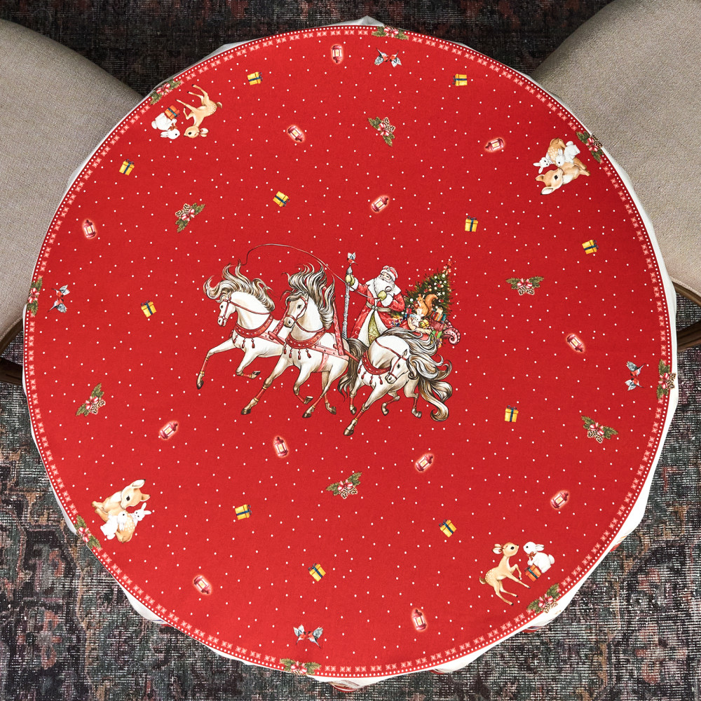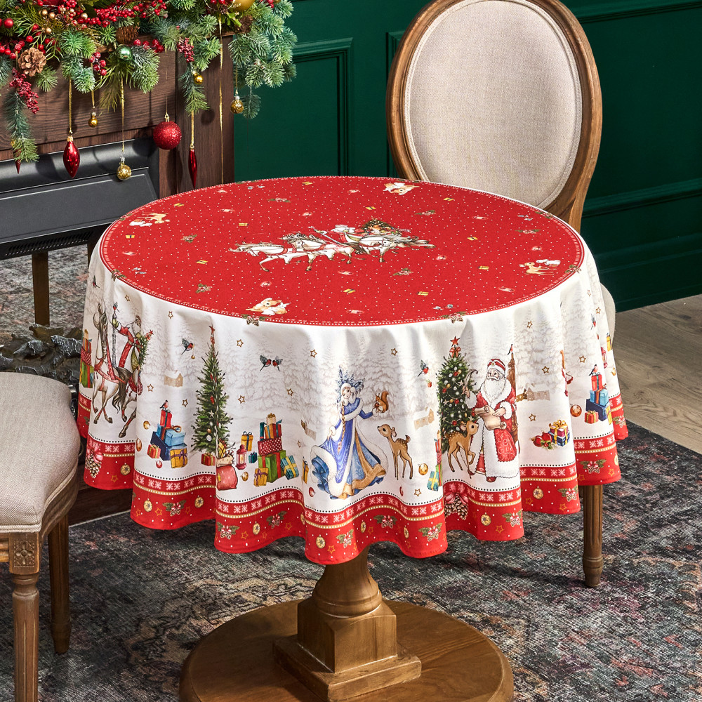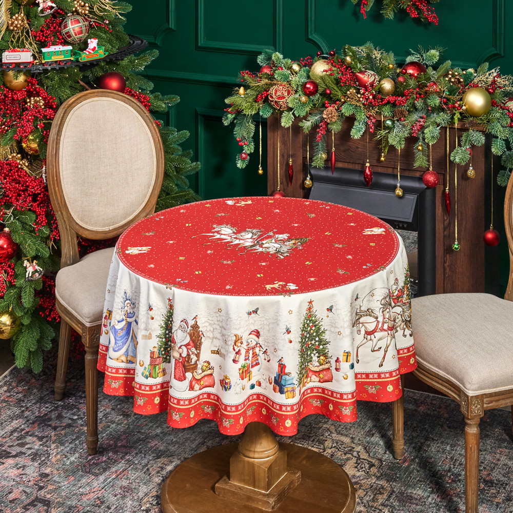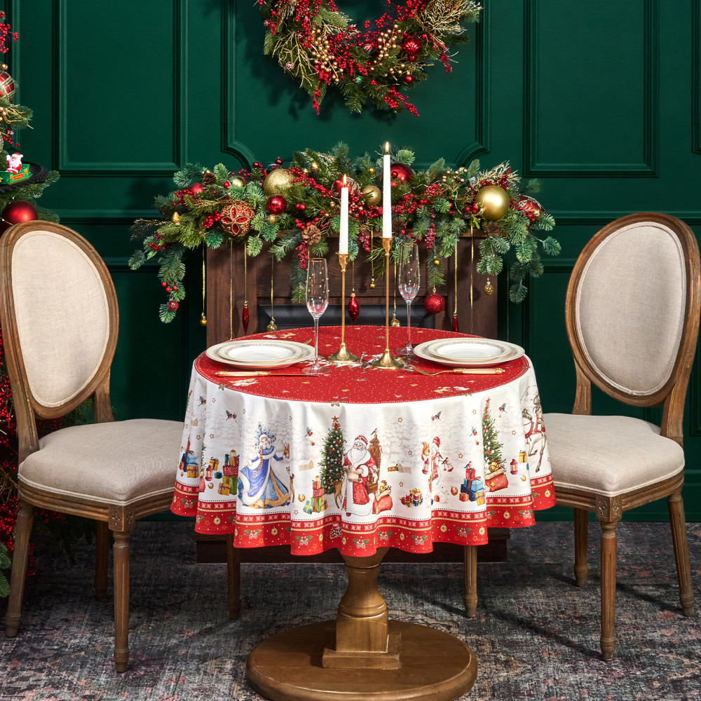 Скатерть от Lefard из коллекции «С Новым годом!» — элегантное решение для сервировки праздничного стола. Диаметр 150 см подходит для круглых столов диаметром от 70 до 100 см, создавая равномерный и эстетичный свес. Выполнена из 100% хлопка (твил) плотностью 190 г/м². Прочная саржевая структура делает ткань износостойкой, устойчива к сминанию и сохраняет форму даже при многократном использовании. Благодаря водоотталкивающей пропитке поверхность защищена от влаги и легко очищается, что делает её практичным выбором для праздничных застолий.