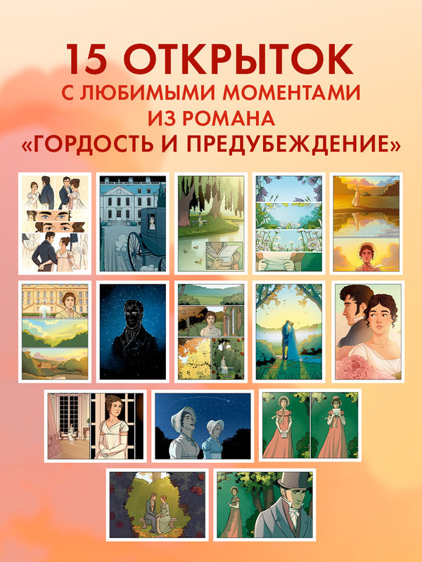 Книга «Гордость и предубеждение» — культовая книга о любви. Этот набор открыток отлично дополняет одноименный графический роман от редакции Trendbooks — новое оригинальное прочтение классики, которое понравится как подросткам (16+), так и взрослым.