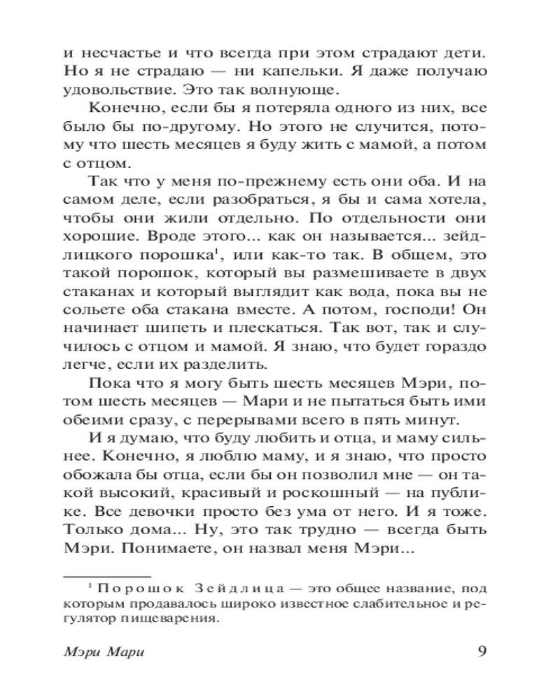 💳 Оплатить за товар можно при получении 🇰🇿 Есть бесплатная доставка по Казахстану 🎁 Копите бонусы с каждой покупки Серия: Эксклюзивная классика Тринадцатилетнюю Мэри Мари Андерсон воспитывают разведенные родители, поэтому по решению суда она вынуждена шесть месяцев жить у отца, а оставшиеся полгода – у мамы. Подстраиваясь под родителей, девушка каждый раз становится другой версией себя: в Андерсонвиле это тихая и незаметная Мэри, а в Бостоне – веселая и бойкая Мари. На страницах своего дневника (на самом деле это будущий роман о любви!) девушка рассказывает о том, как она проживает две разные жизни, делится своими переживаниями и задается вопросом: кто же она на самом деле – Мэри или Мари? |