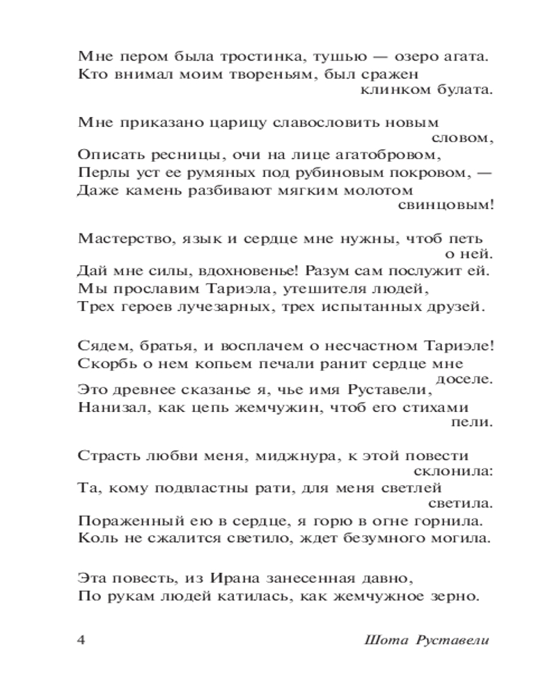 💳 Оплатить за товар можно при получении 🇰🇿 Есть бесплатная доставка по Казахстану от 1 дня 🎁 Копите бонусы с каждой покупки Серия: Эксклюзивная классика Облачённый в тигровую шкуру витязь, случайно повстречавшийся аравийскому царю, играючи побеждает его лучших воинов и скрывается с поля боя. Тогда дочь царя обещает влюблённому в неё военачальнику Автандилу стать его женой, если тот найдёт неуловимого воина. После долгих поисков Автандил выполняет её просьбу. Но, выяснив, что витязь и сам совершает подвиги во имя любви и уже много лет ищет по всему свету свою пропавшую суженую, Автандил клянётся помочь новому другу воссоединиться с любимой. Повествующая о бессмертной любви и преданной дружбе поэма «Витязь в тигровой шкуре» уже более восьми сотен лет не теряет актуальности, сочетая в себе вечные темы и мудрые афоризмы. |