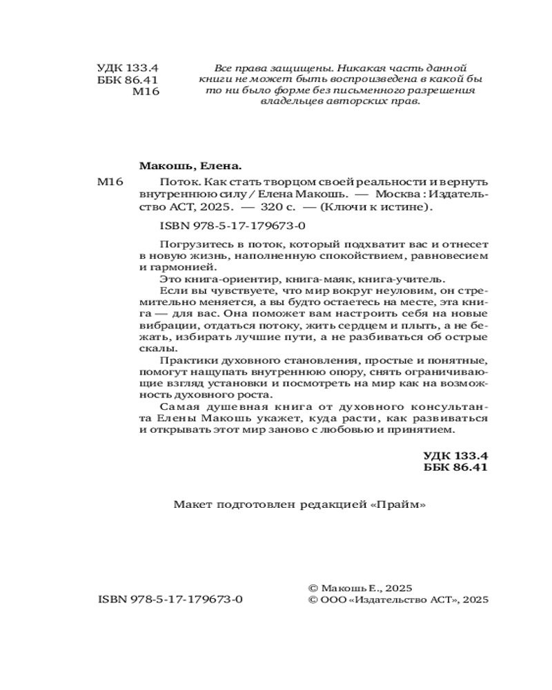 Серия: Ключи к истине «Поток. Как стать творцом своей реальности и вернуть внутреннюю силу» — книга-проводник, которая поможет вам обрести внутренний баланс, довериться течению жизни и открыть новые возможности для духовного роста. |