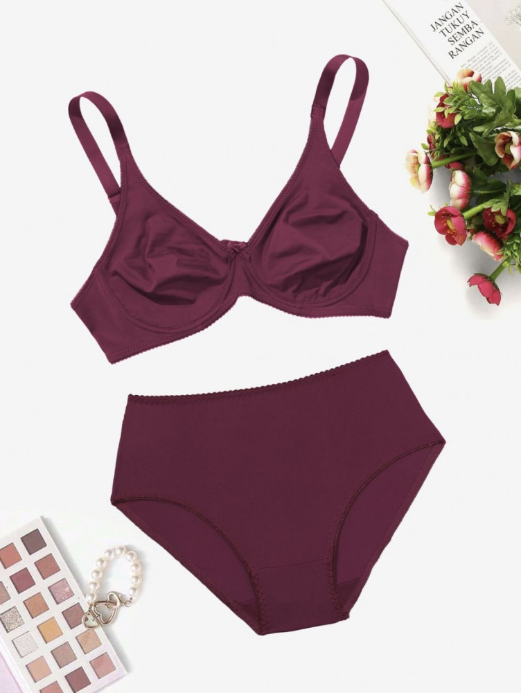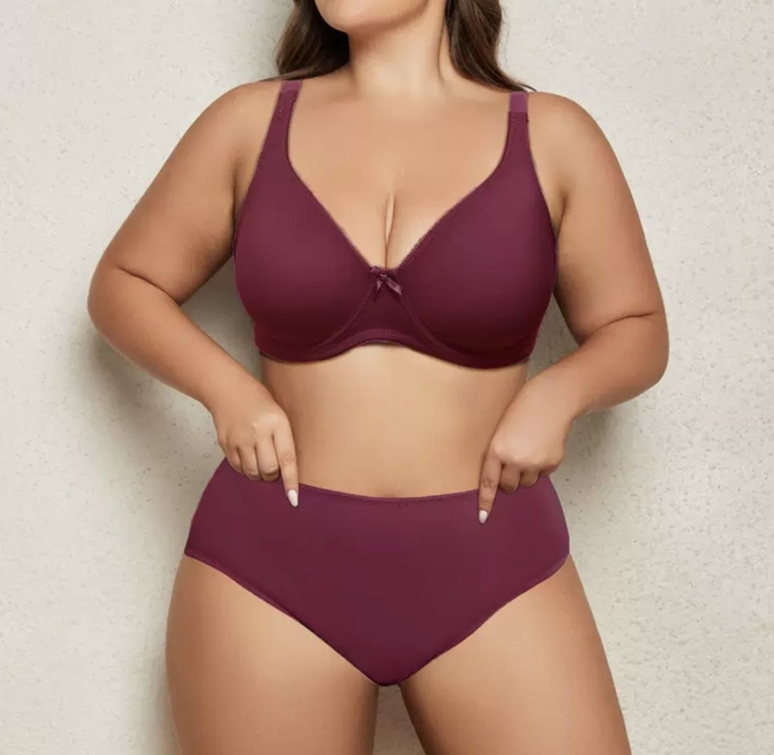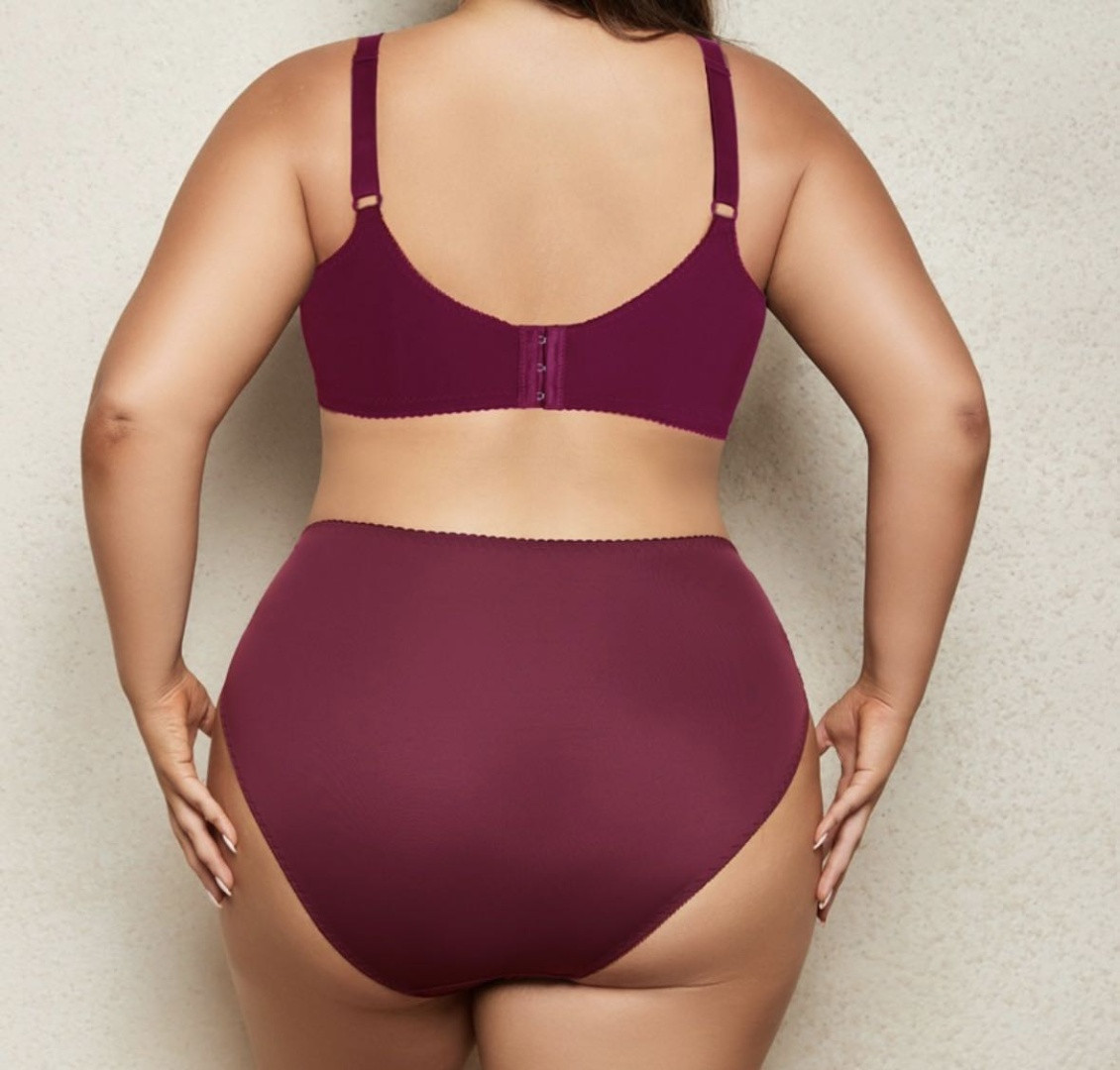 Благородный однотонный комплект нижнего белья для роскошных пышных форм, для женщин полных красоты и женственности! Набор тонкого женского нижнего белья состоит из комфортного бюстгальтера и глубоких трусиков слипов. Женский лифчик из качественного материала без поролона и подкладкой из хлопка прекрасно поддерживает большую грудь, не передавливая ее. Т-образный крой чашечки обеспечивает надежную поддержку и правильно распределяет грудь внутри чашки. Полноразмерная чашка формы лепесток повторяет линию груди и поддерживает ее. Гибкая боковая косточка формирует и собирает грудь к центру. Обтягивающие трусики слипы с завышенной посадкой удобно садятся по фигуре, слегка корректируют и утягивают живот и незаметны под одеждой. Элегантное женское белье подчеркнет ваши достоинства и добавит образу пикантности.