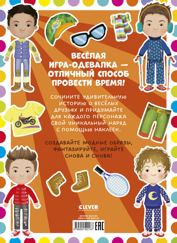 💳 Оплатить за товар можно при получении 🇰🇿 Есть бесплатная доставка по Казахстану 🎁 Копите бонусы с каждой покупки Серия: Наряди куколку Книжка с наклейками «Веселые друзья» понравится всем, кто любит активити серии «Наряди куколку»! Играя со стикерами, можно придумывать истории о веселых ребятах и помогать им одеваться: подобрать спортивную форму для футбольной тренировки и для тенниса, найти костюмы для праздника и супергеройские образы для вечеринки. Некоторых героев нужно одеть полностью, а некоторым только дополнить образ. |