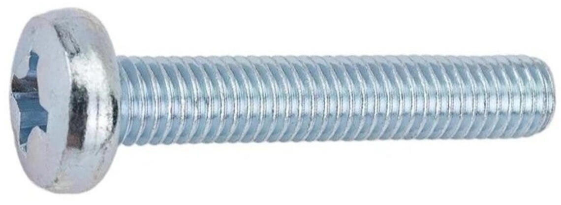 Винт DIN 7985 применяется для монтажа листового металла, для соединения профилей из жести, в машиностроении. Класс прочности 5.8. Шлиц — PH1.