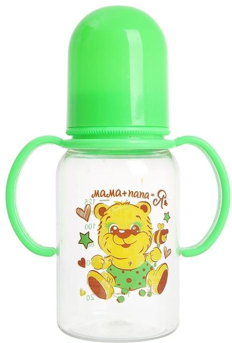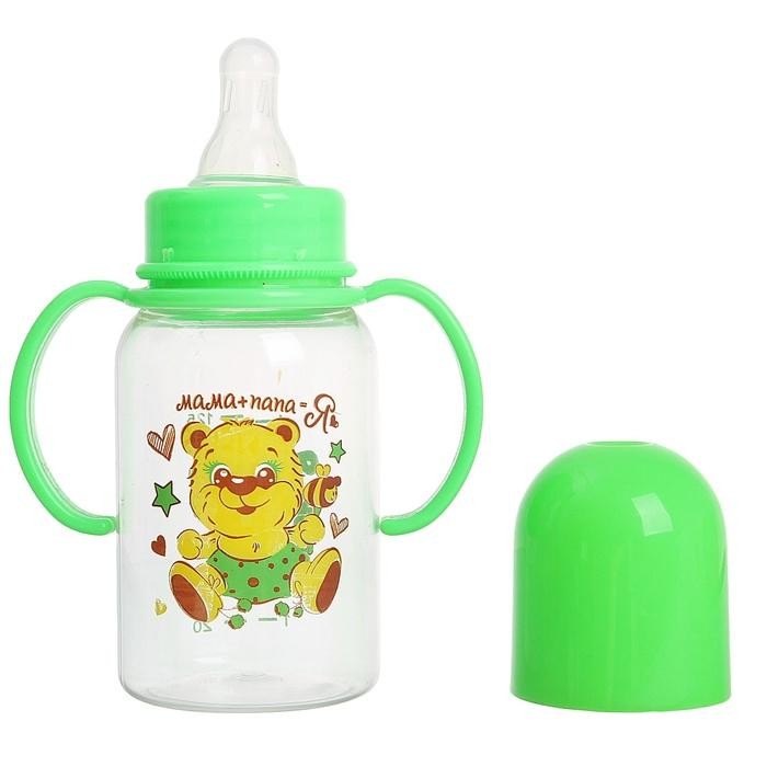 Отзывы «Бутылочка для кормления с ручками «Мама+папа=я» (125 мл) с силиконовой соской, цвет: зеленый»