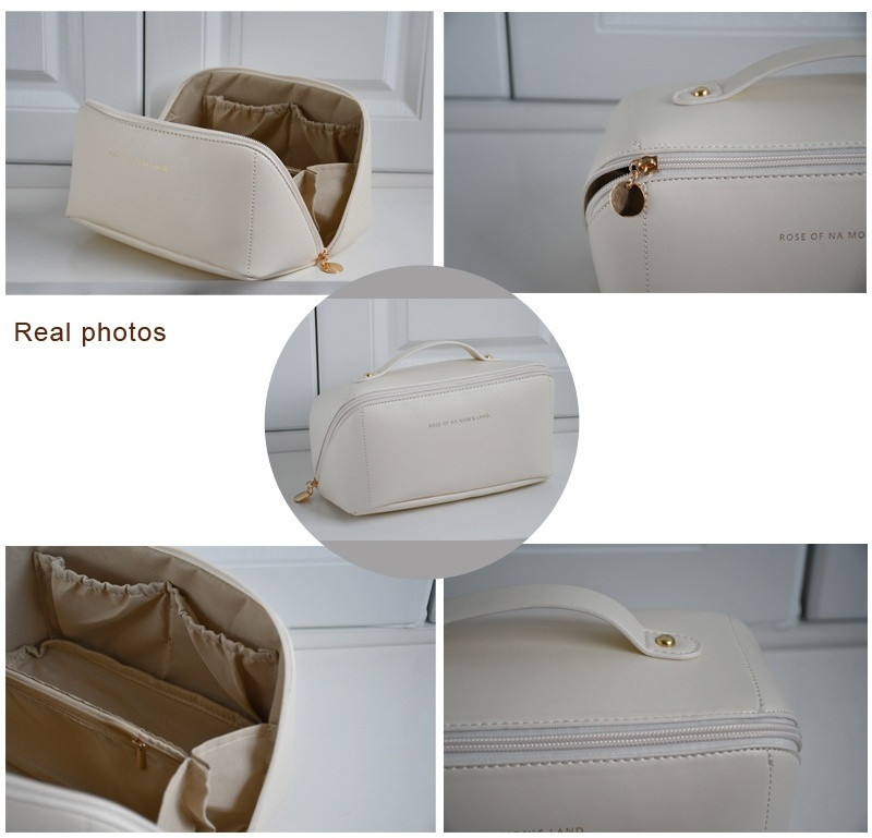 Косметичка из искусственной кожи — стильный и функциональный аксессуар для хранения косметики и мелочей. Плоский дизайн позволяет полностью раскрывать сумку, обеспечивая удобный обзор всех вещей и лёгкий доступ к ним, а после использования она легко закрывается и сохраняет форму. Изготовлена из гладкой водоотталкивающей искусственной кожи, которую просто очищать, с прочной полиэстеровой подкладкой. Внутри предусмотрен прозрачный водоотталкивающий отсек из TPU для кисточек, чтобы они оставались аккуратно сложенными и видимыми. Косметичка универсальна в использовании — идеально подойдёт для путешествий, деловых поездок, отдыха или повседневного применения, а также может использоваться как органайзер для ванной или сумка для туалетных принадлежностей. Поставляется с надувной защитной прокладкой, сохраняющей форму изделия и обеспечивающей его безупречный вид при доставке. Это практичный и стильный аксессуар, который станет отличным подарком для женщин, ценящих качество и удобство.