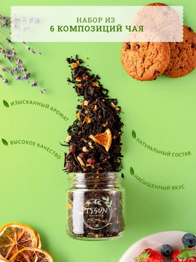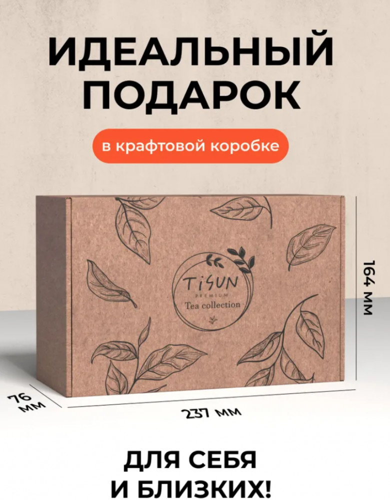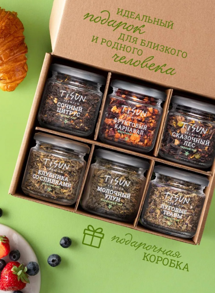 Подарочный набор из премиальных купажей листового чая в стеклянных баночках TiSun станет невероятно теплым подарком как для Вас, так и для Ваших близких. Натуральный состав без искусственных красителей и ГМО обеспечивает свежезаваренному напитку из ассортимента не только отменные вкусовые качества, но и заботу о Вашем здоровье. Чайная коллекция в подарочной коробке — отличный полезный подарок для близких и необходимая вещь на собственной кухне.
